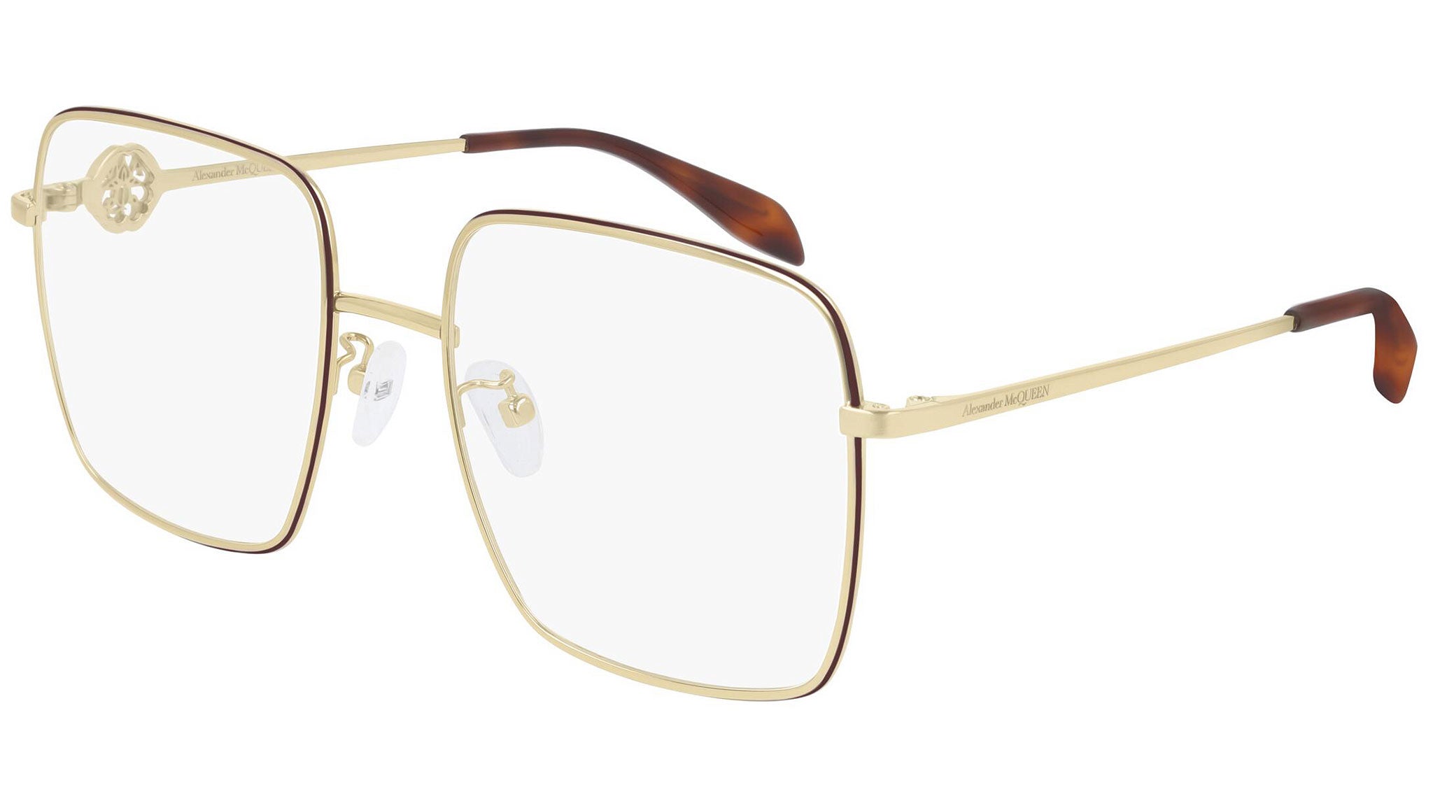 Alexander McQueen optical glasses model AM0227O 003 featuring shiny rose gold / shiny dark violet frame. Synonymous with fearless fashion, Alexander McQueen Eyewear eyewear styles represent a juxtaposition between contrasting elements, as his runway styles are unique and inspiring. Buy your frames online and take them to your local optician to fit prescription lenses.