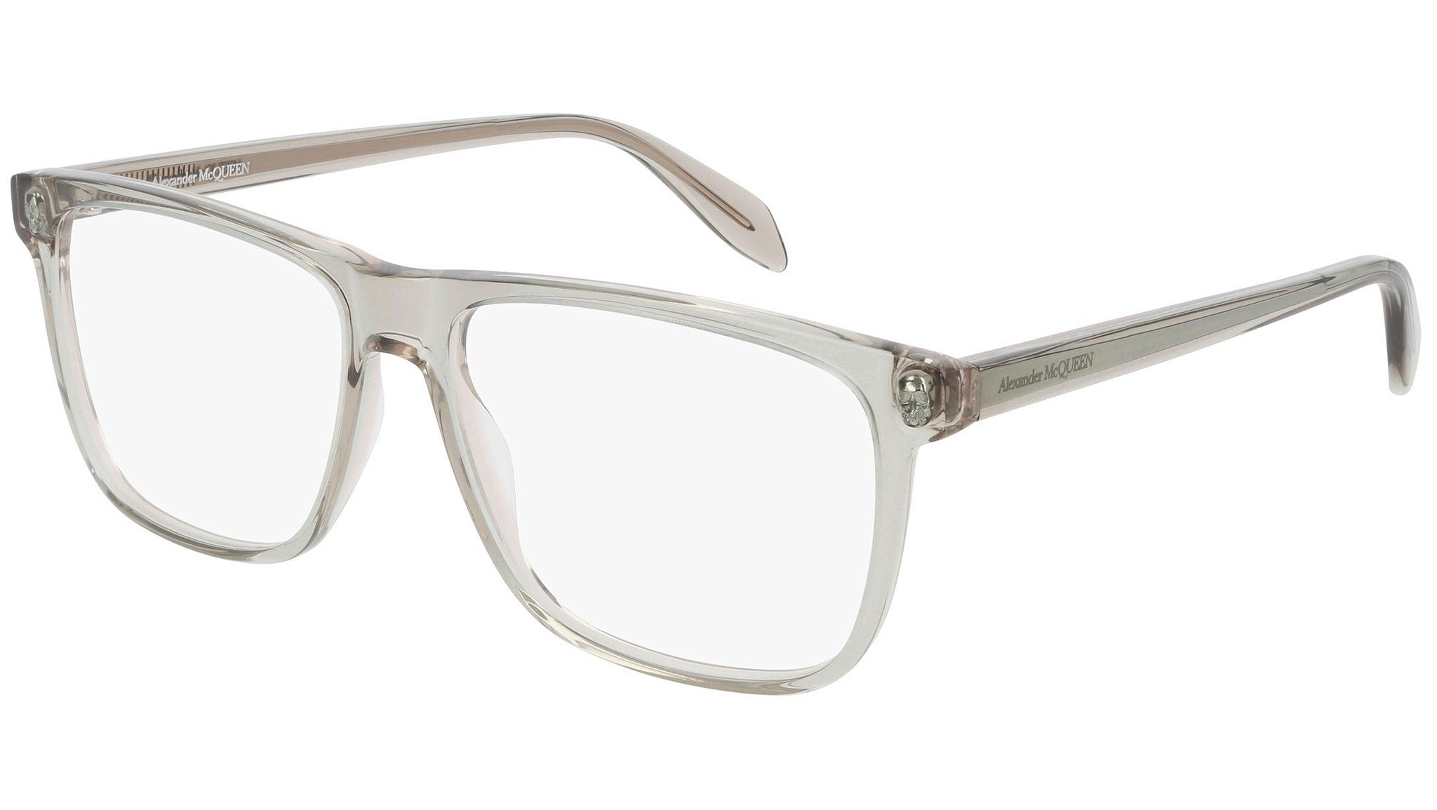 Alexander McQueen optical glasses model AM0247O 003 featuring shiny bilayer transparent green / pink frame. Synonymous with fearless fashion, Alexander McQueen Eyewear eyewear styles represent a juxtaposition between contrasting elements, as his runway styles are unique and inspiring. Buy your frames online and take them to your local optician to fit prescription lenses.