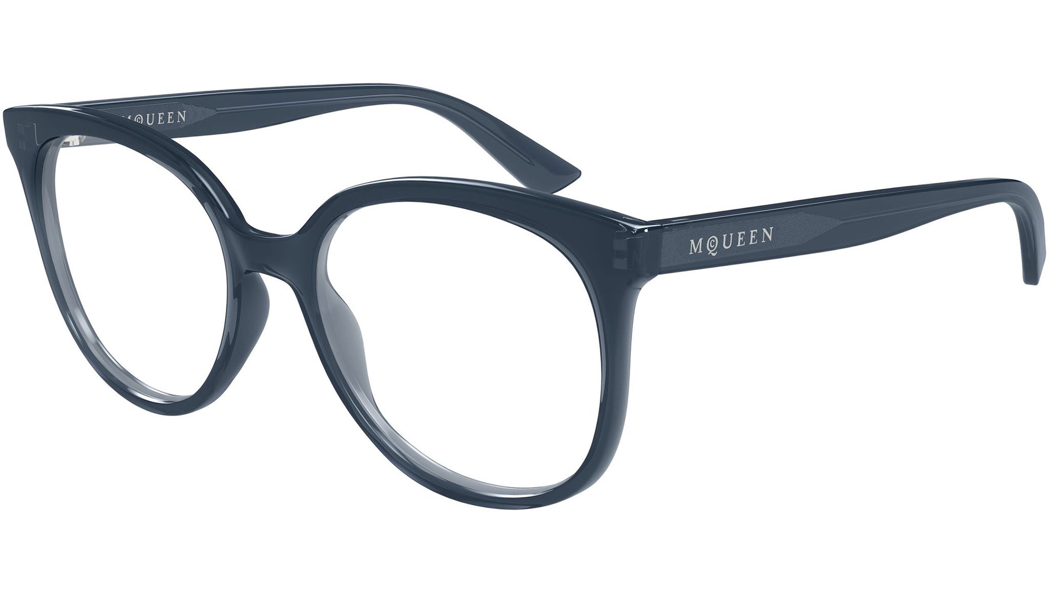 Occhiali da vista Alexander McQueen Logo modello AM0540O in acetato riciclato cat eye codice colore 003 grigio scuro trasparente con aste grigio e lenti demo. Rivenditore autorizzato Alexander McQueen online. Gli occhiali vengono consegnati con custodia e accessori originali e sono coperti dalla garanzia ufficiale di 12 mesi del produttore.