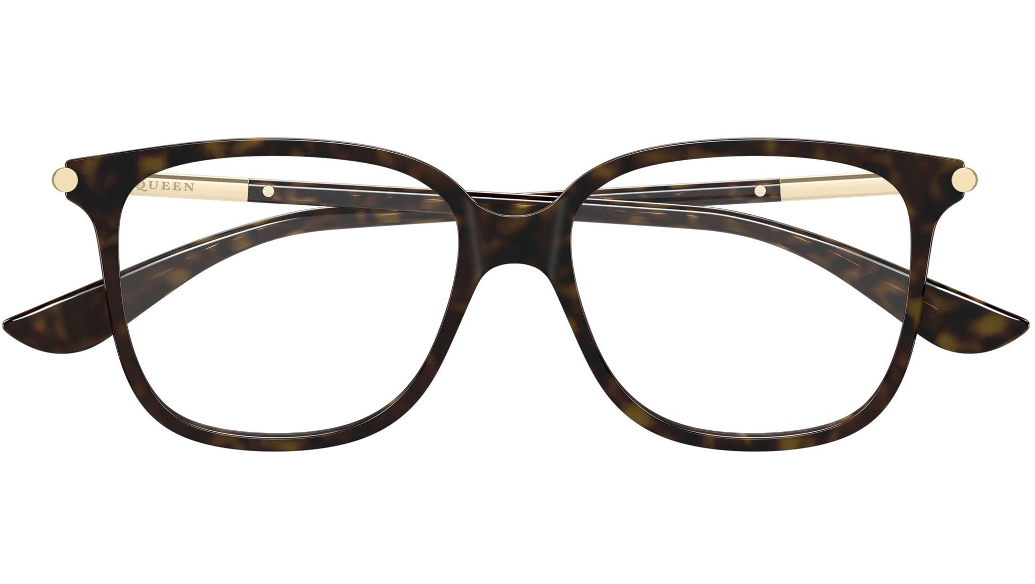 Occhiali da vista Alexander McQueen AM0554O 006 donna con montatura cat eye in acetato riciclato avana scuro lucido e lenti demo. Linea: T-Bar. Codice modello: AM0554O. Codice colore: 006. Made in Japan. Rivenditore autorizzato Alexander McQueen online. Gli occhiali vengono consegnati con custodia e accessori originali e sono coperti dalla garanzia ufficiale di 12 mesi del produttore.