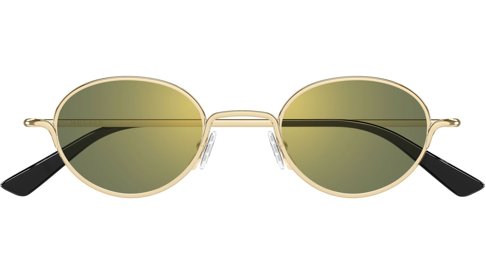 Occhiali da sole Alexander McQueen AM0562S 003 unisex con montatura pantos in metallo oro chiaro lucido e lenti verde scuro + verde medio. Linea: Logo. Codice modello: AM0562S. Codice colore: 003. Made in Italy. Rivenditore autorizzato Alexander McQueen online. Gli occhiali vengono consegnati con custodia e accessori originali e sono coperti dalla garanzia ufficiale di 12 mesi del produttore.