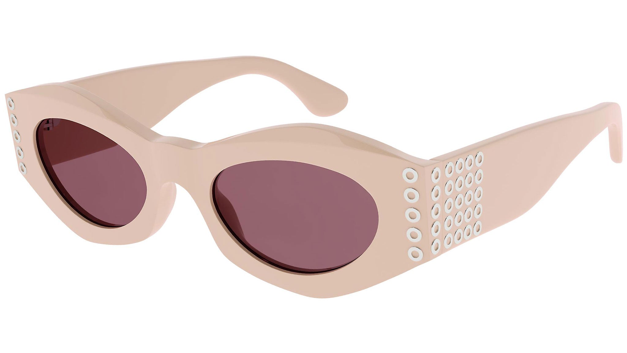 Occhiali da sole Azzedine Alaïa linea Embellishments modello 0057S, variante colore 002 viola vintage tinta unita lucido con lenti color borgogna tinta unita.
