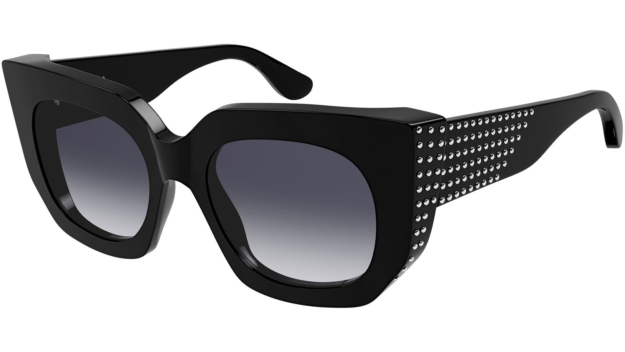 Occhiali da sole Azzedine Alaïa modello AA0062S variante colore 001 nero lucido con lenti color grigio scuro sfumato.