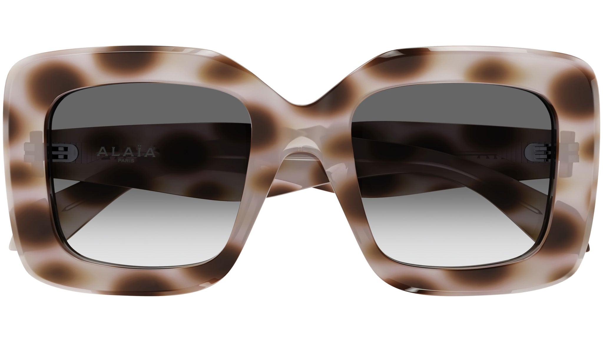 Occhiali da sole Azzedine Alaïa modello AA0065S variante colore 004 animalier avana grigio con lenti color grigio sfumato.