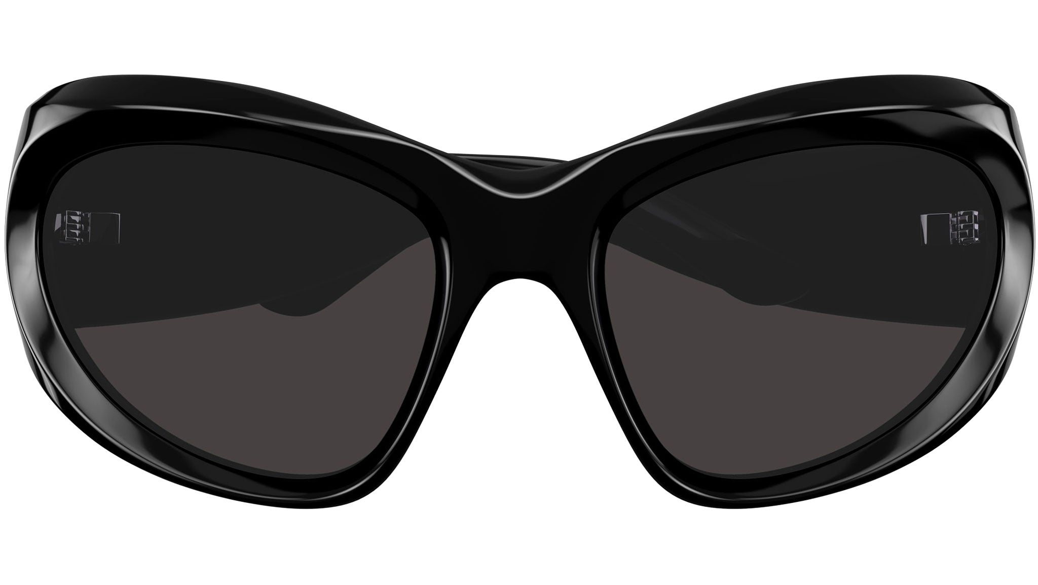 Occhiali da sole Balenciaga linea Extreme BB0228S codice colore 001 con montatura nero lucido e lenti color grigio tinta unita.