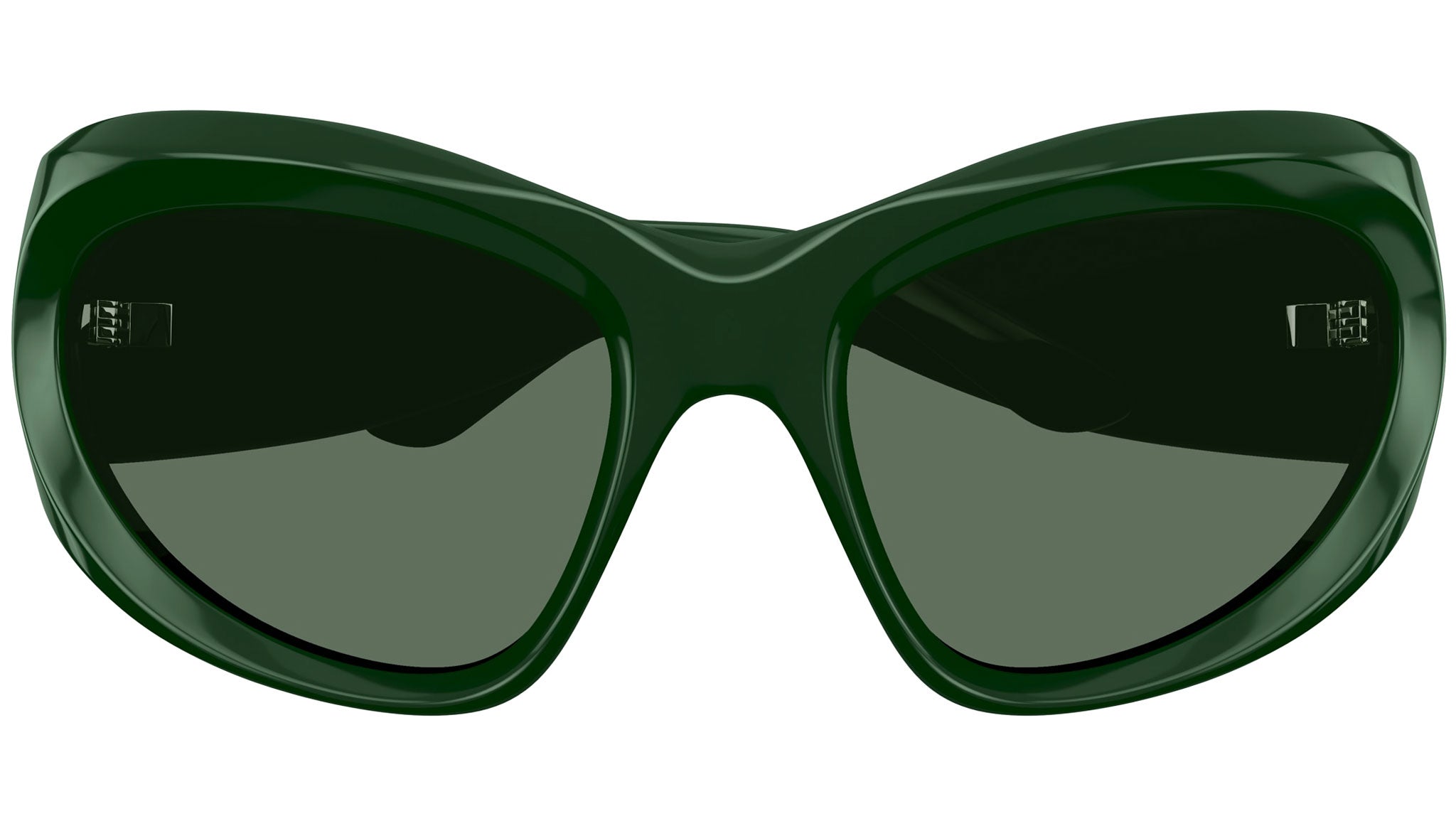 Occhiali da sole Balenciaga linea Extreme BB0228S codice colore 002 con montatura verde tinta unita lucido e lenti color verde tinta unita.