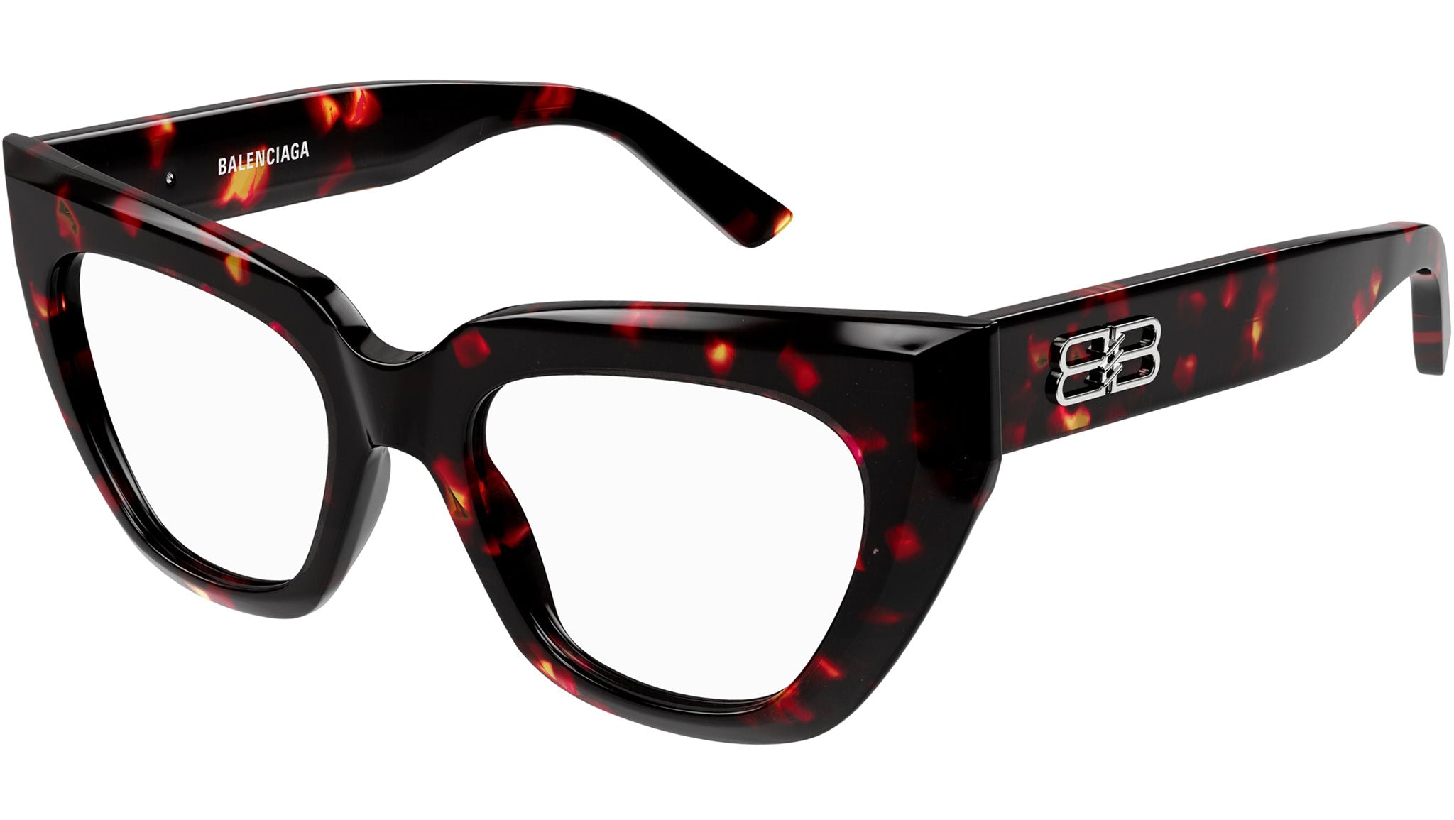Occhiali da vista Balenciaga modello BB0238O linea Everyday codice colore 005 avana rossastro scuro lucido in acetato forma cat eye con aste color tartaruga.