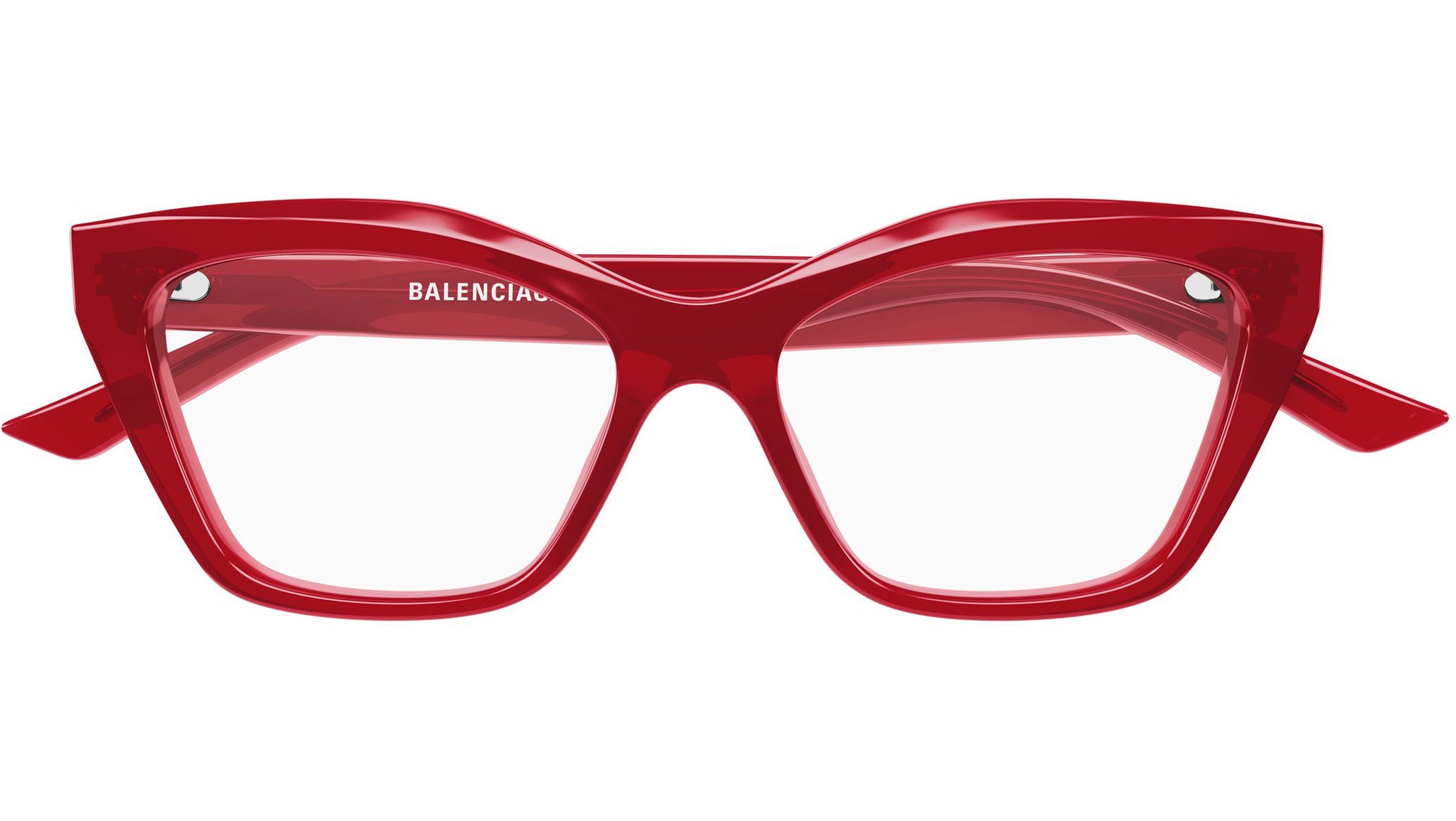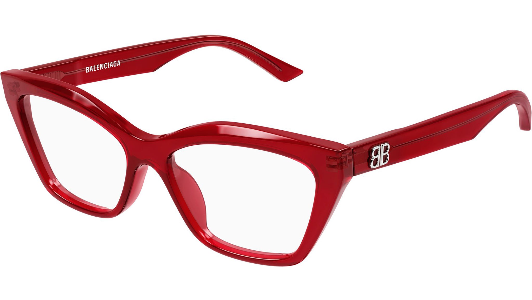 Occhiali da vista Balenciaga BB0342O 019 donna con montatura cat eye in acetato riciclato rosso trasparente lucido e lenti demo. Linea: Everyday. Codice modello: BB0342O. Codice colore: 019. Made in Italy. Rivenditore autorizzato Balenciaga online. Gli occhiali vengono consegnati con custodia e accessori originali e sono coperti dalla garanzia ufficiale di 12 mesi del produttore.