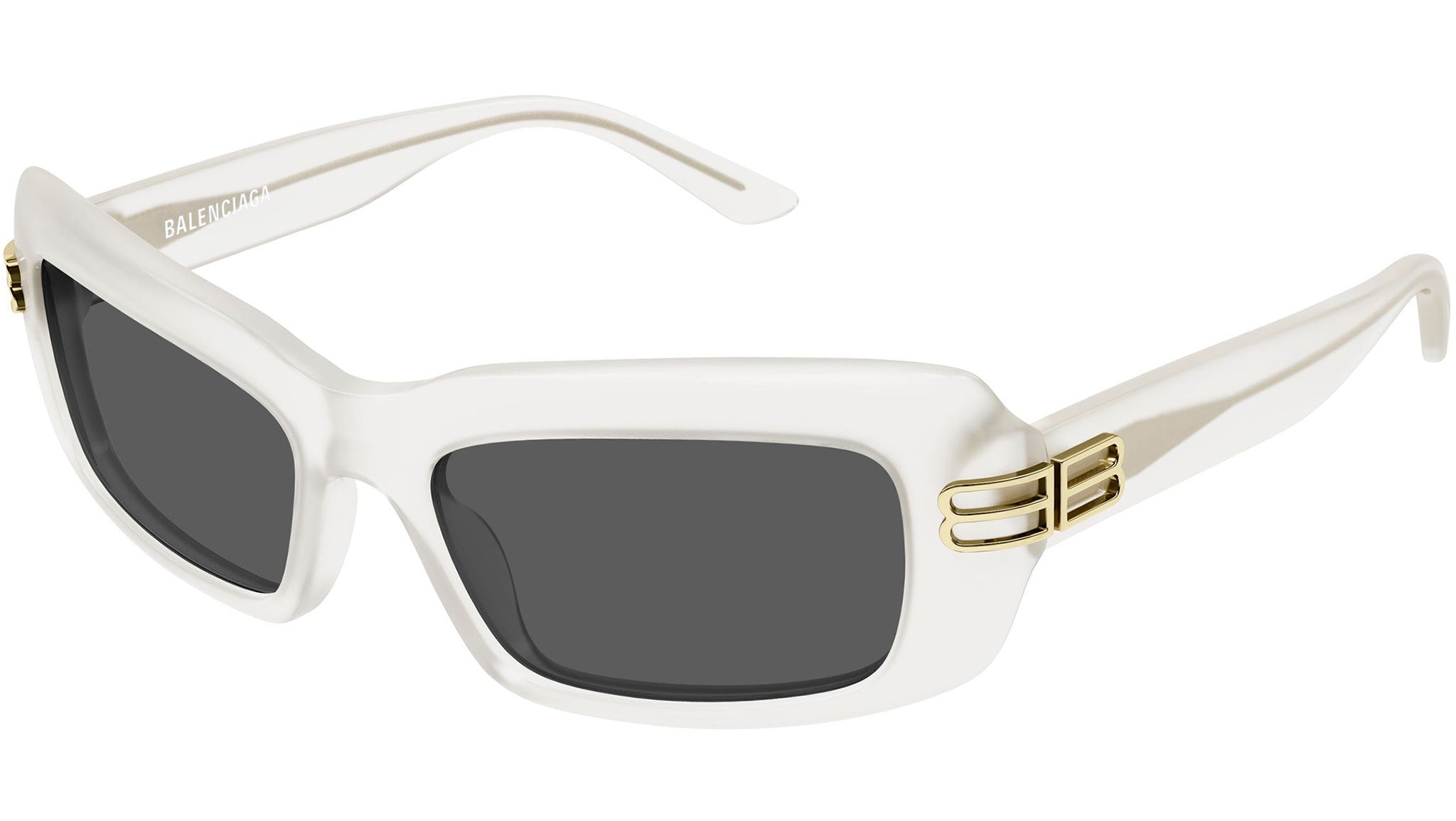 Occhiali da sole Balenciaga BB0432S 003 donna con montatura rettangolare in acetato riciclato bianco ostrica chiaro opale lucido e lenti grigio solido. Linea: Everyday. Codice modello: BB0432S. Codice colore: 003. Made in Japan. Rivenditore autorizzato Balenciaga online. Gli occhiali vengono consegnati con custodia e accessori originali e sono coperti dalla garanzia ufficiale di 12 mesi del produttore.