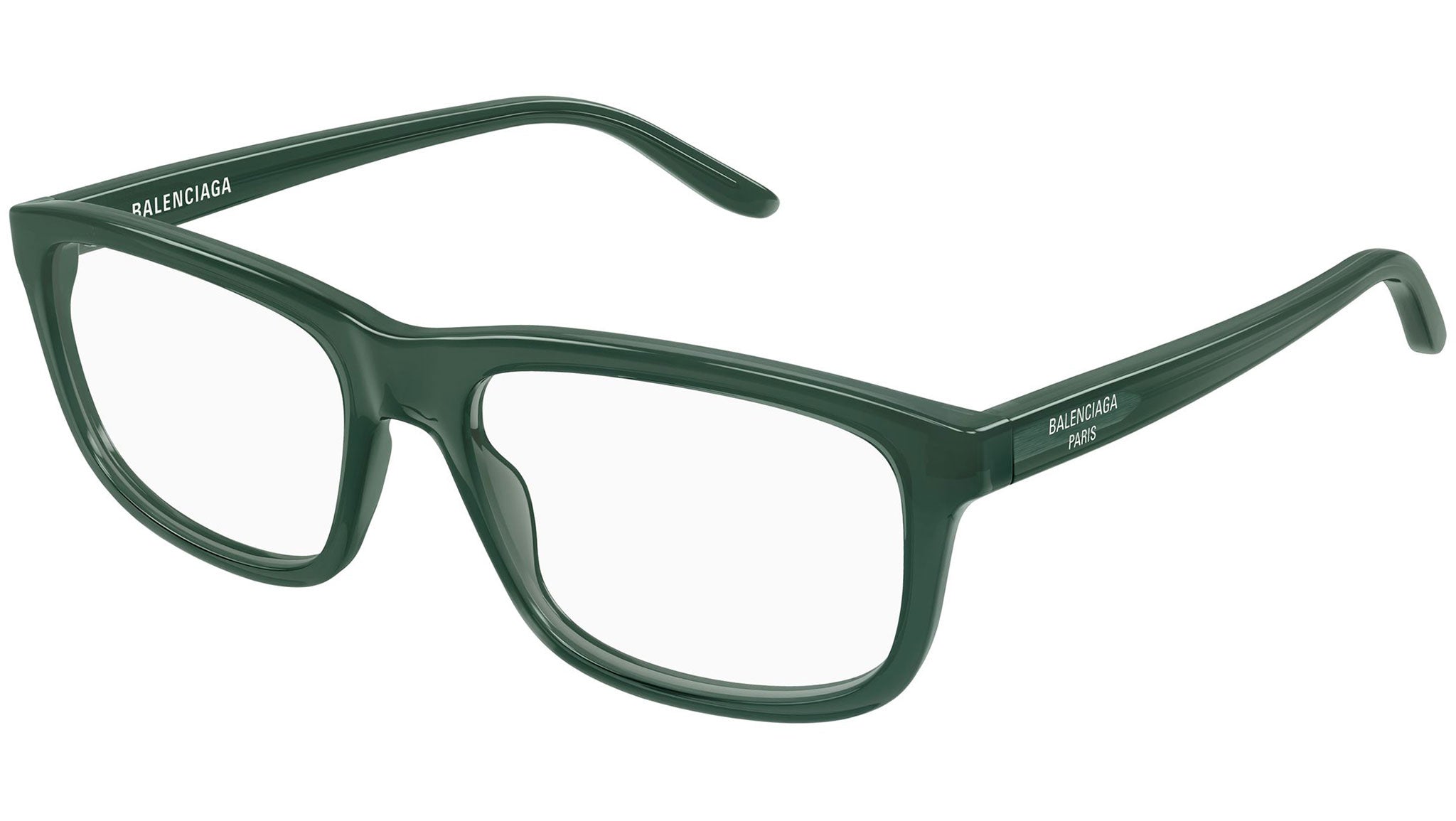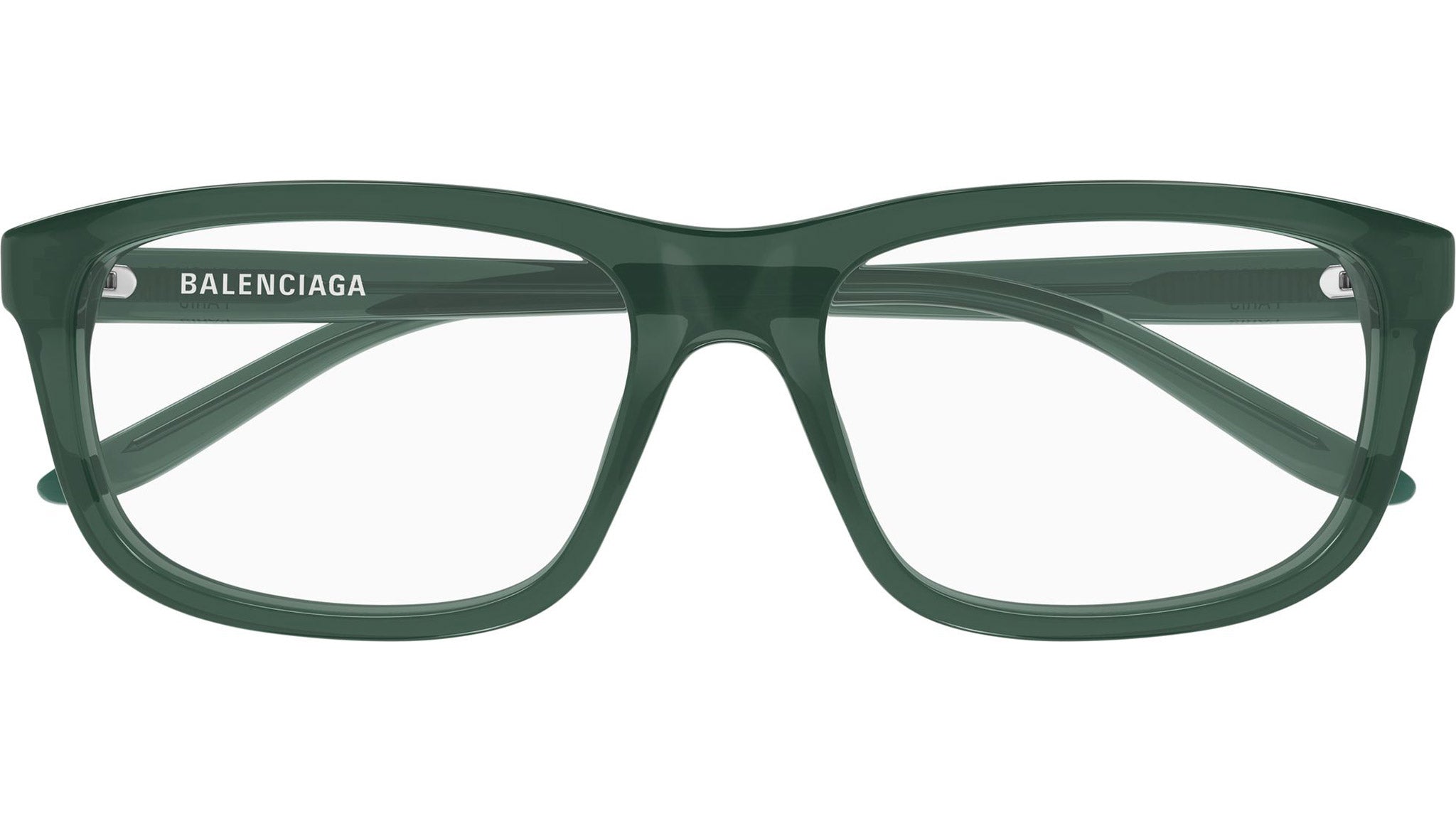 Occhiali da vista Balenciaga BB0438O 007 uomo con montatura rettangolare in acetato riciclato verde scuro trasparente lucido e lenti demo. Linea: Everyday. Codice modello: BB0438O. Codice colore: 007. Made in Japan. Rivenditore autorizzato Balenciaga online. Gli occhiali vengono consegnati con custodia e accessori originali e sono coperti dalla garanzia ufficiale di 12 mesi del produttore.