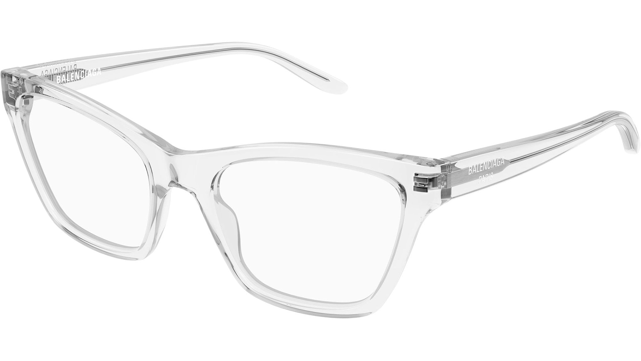 Occhiali da vista Balenciaga BB0440O 006 donna con montatura cat eye in acetato riciclato crystal lucido e lenti demo. Linea: Everyday. Codice modello: BB0440O. Codice colore: 006. Made in Japan. Rivenditore autorizzato Balenciaga online. Gli occhiali vengono consegnati con custodia e accessori originali e sono coperti dalla garanzia ufficiale di 12 mesi del produttore.