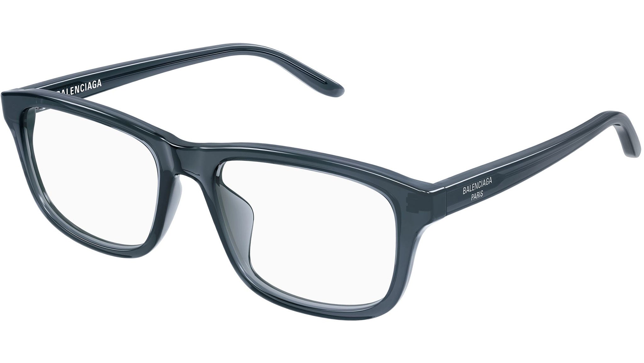 Occhiali da vista Balenciaga BB0442OA 007 unisex con montatura rettangolare in acetato riciclato grigio blu trasparente e lenti demo. Linea: Everyday. Codice modello: BB0442OA. Codice colore: 007. Made in Japan. Rivenditore autorizzato Balenciaga online. Gli occhiali vengono consegnati con custodia e accessori originali e sono coperti dalla garanzia ufficiale di 12 mesi del produttore.