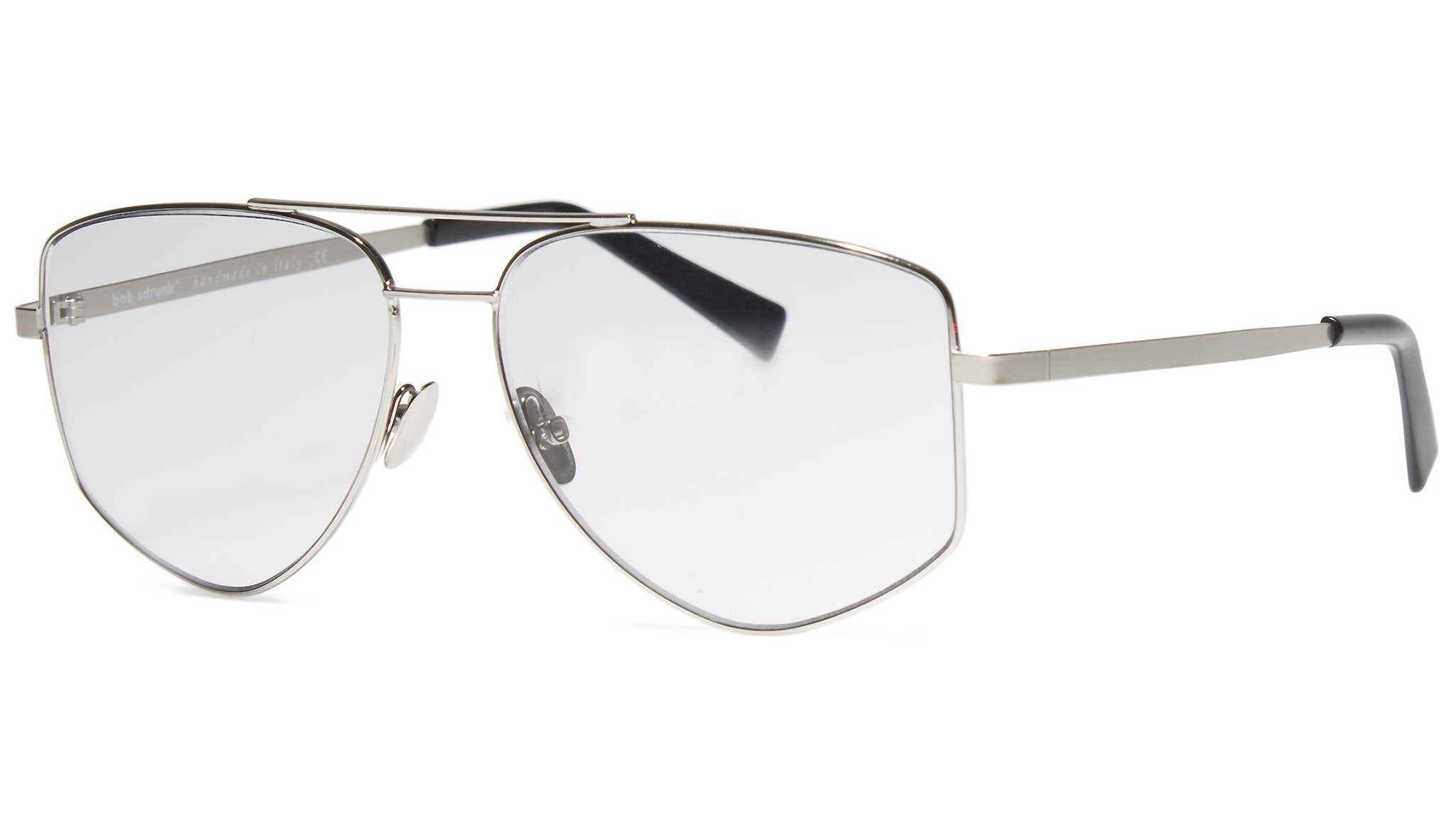 Il modello Bob Sdrunk da vista Arnold 103 con montatura color grigio argento e lenti demo antiriflesso. La meticolosa ricerca del design, delle forme, dei materiali e la cura di ogni singolo dettaglio, da vita a occhiali di alta qualità, originali e non convenzionali. Bob Sdrunk si propone di creare qualcosa che non è mai esistito; qualcosa che trova la sua vera sua identità nel futuro, ma trae origine da ispirazioni che provengono dal passato.
