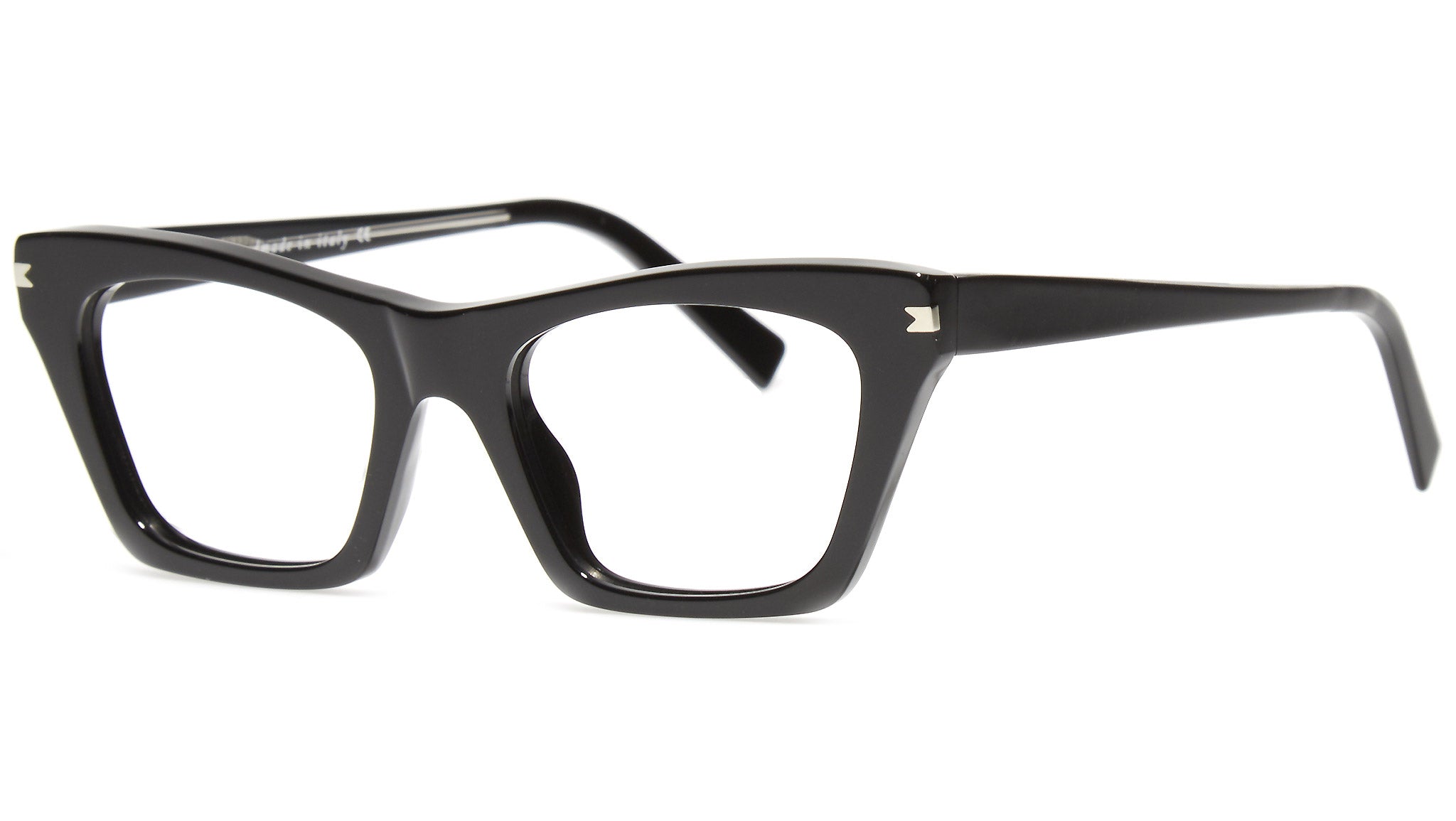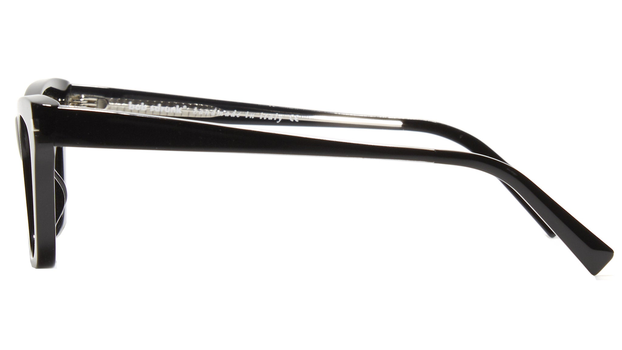 Il modello Bob Sdrunk da vista Cassandra 01 con montatura in nero e lenti demo. La meticolosa ricerca del design, delle forme, dei materiali e la cura di ogni singolo dettaglio, da vita a occhiali di alta qualità, originali e non convenzionali. Bob Sdrunk si propone di creare qualcosa che non è mai esistito; qualcosa che trova la sua vera sua identità nel futuro, ma trae origine da ispirazioni che provengono dal passato.
