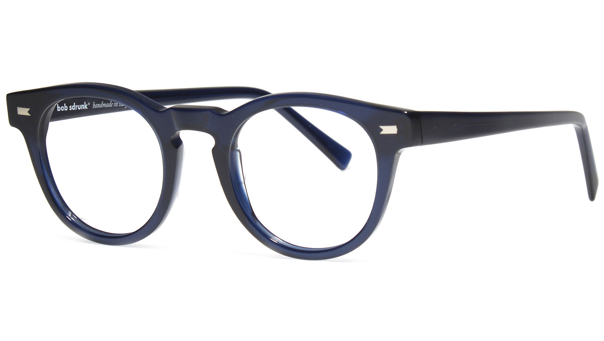 Il modello Bob Sdrunk da vista Tony 13 con montatura in blu e lenti demo antiriflesso. La meticolosa ricerca del design, delle forme, dei materiali e la cura di ogni singolo dettaglio, da vita a occhiali di alta qualità, originali e non convenzionali. Bob Sdrunk si propone di creare qualcosa che non è mai esistito; qualcosa che trova la sua vera sua identità nel futuro, ma trae origine da ispirazioni che provengono dal passato.