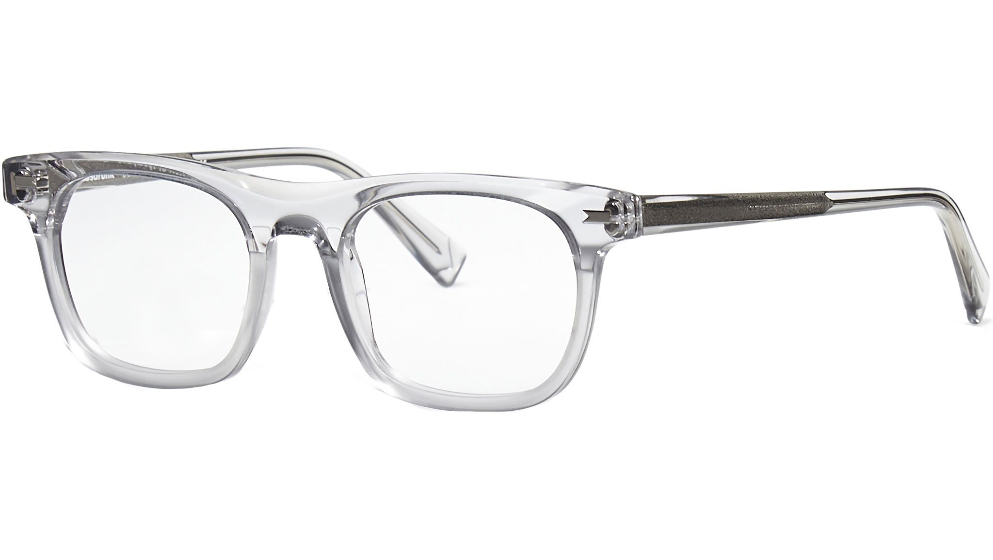Montatura da vista Bobsdrunk Zach codice colore 171/S in tonalità grigio trasparente opaco. Prodotti senza tempo e forme audaci convivono in questa originale collezione Eyewear. Le linee sono disegnate con maestria, per creare un effetto di audace leggerezza. Ogni paio di occhiali Bobsdrunk è caratterizzato da un dettaglio emblematico, mostrato sulla parte anteriore e sulla punta delle aste, che evidenzia il valore del marchio. Rappresenta in un iconico simbolo l'unione della lettera iniziale e finale di Bobsdrunk. La scelta accurata dei materiali, la selezione dell'artigianalità e una costante ricerca cromatica sono le prerogative di ogni creazione di Bobsdrunk.