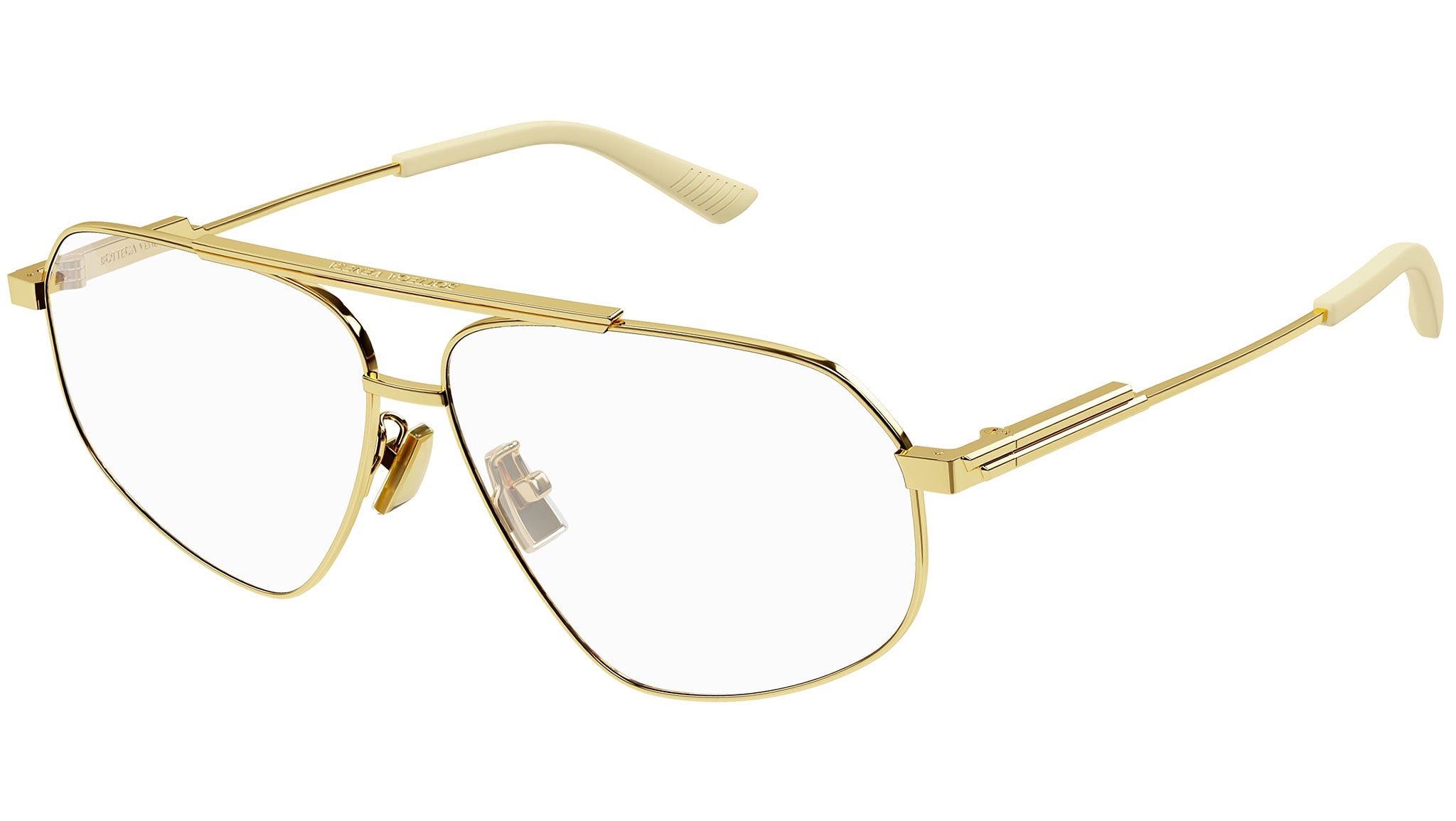 Occhiali da vista Bottega Veneta linea Minimalist modello BV1196O variante colore 002 oro lucido con astine color oro.