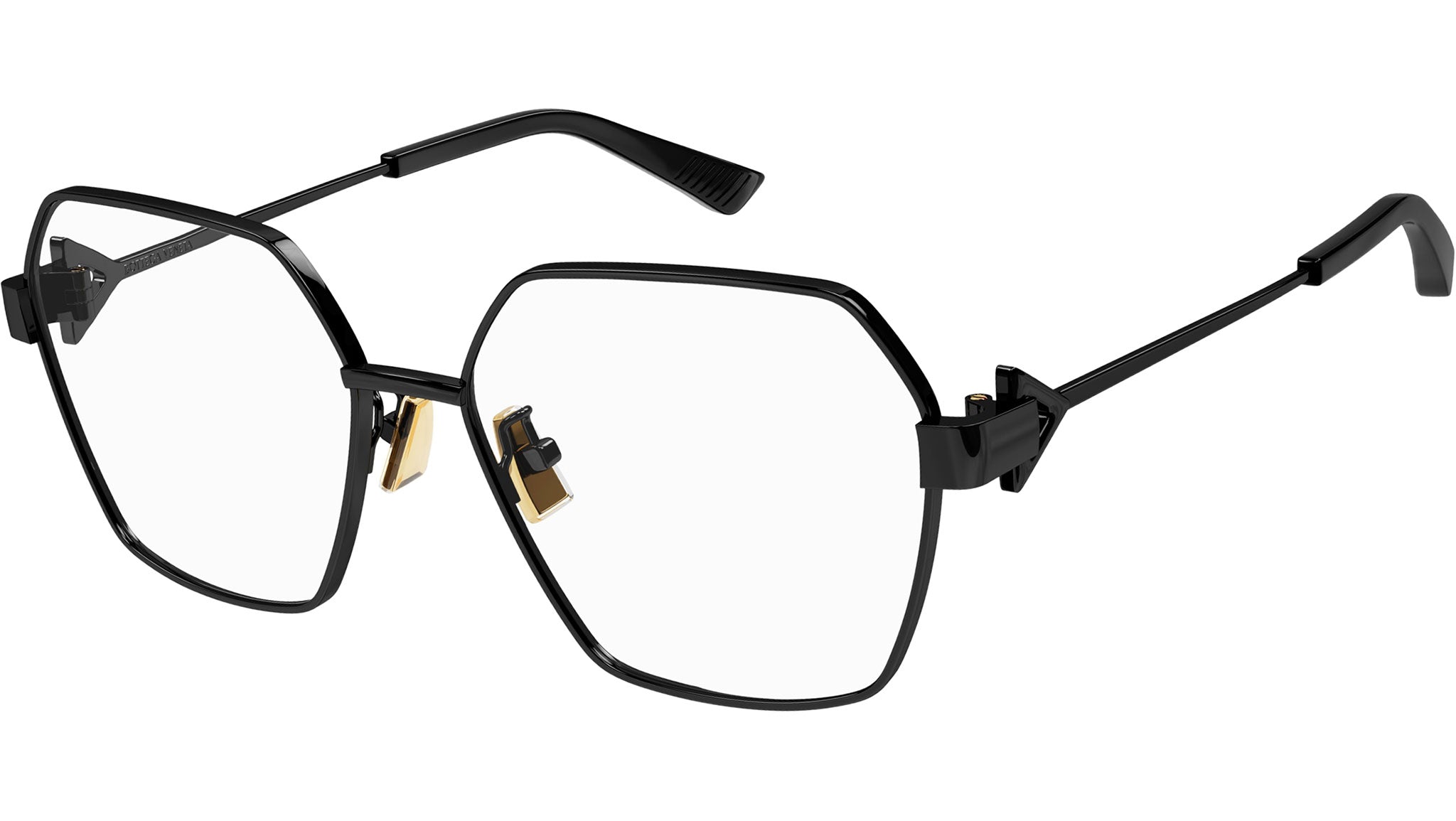 Occhiali da vista Bottega Veneta linea New Classic modello BV1224O variante colore 001 nero lucido con astine color nero.