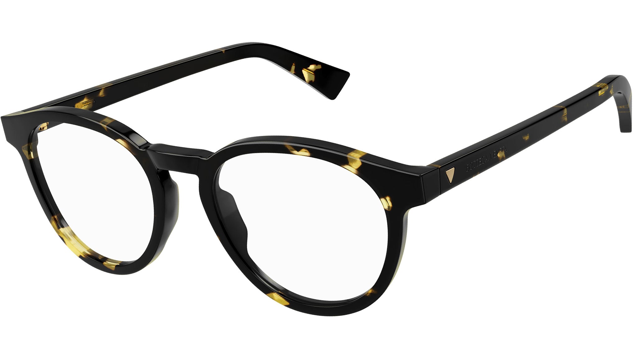 Occhiali da vista Bottega Veneta linea New Classic modello BV1225O 002 variante colore avana maculato lucido con astine color tartaruga.