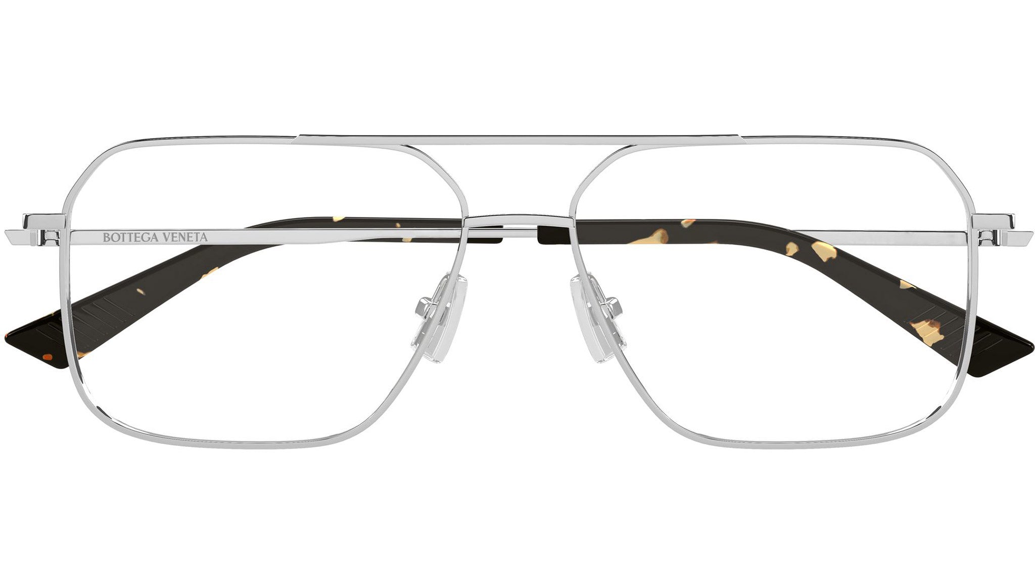 Occhiali da vista Bottega Veneta BV1384O 002 uomo con montatura aviatore in metallo argento lucido e lenti demo. Linea: Ribbon. Codice modello: BV1384O. Codice colore: 002. Made in Italy. Rivenditore autorizzato Bottega Veneta online. Gli occhiali vengono consegnati con custodia e accessori originali e sono coperti dalla garanzia ufficiale di 12 mesi del produttore.