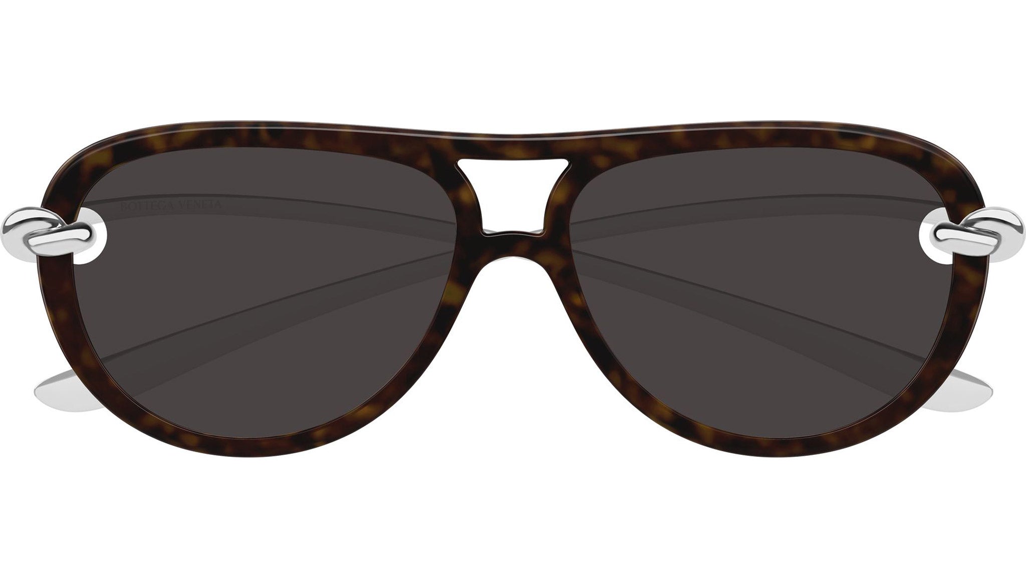 Occhiali da sole Bottega Veneta BV1418S 002 donna con montatura aviatore in inietatto avana scuro lucido e lenti grigio tinta unita. Linea: Signature Icons. Codice modello: BV1418S. Codice colore: 002. Made in Japan. Rivenditore autorizzato Bottega Veneta online. Gli occhiali vengono consegnati con custodia e accessori originali e sono coperti dalla garanzia ufficiale di 12 mesi del produttore.