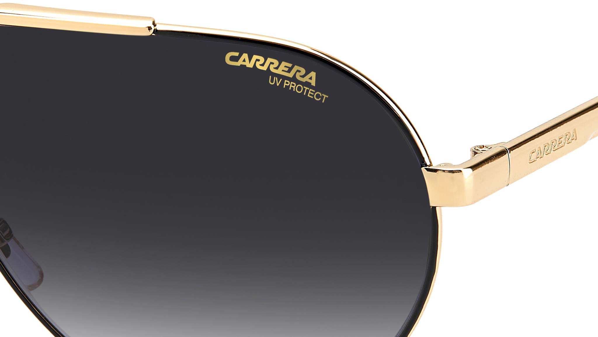 Sempre un passo avanti, Carrera presenta questi occhiali da sole modello aviatore – la soluzione perfetta per distinguersi dalla folla. La leggera montatura a mascherina dall'appeal sportivo è realizzata in metallo e caratterizzata da un doppio ponte impreziosito con il dettaglio in pelle e l’iconica C in basso rilievo. Il logo lettering del brand aggiunge l’immancabile tocco finale.