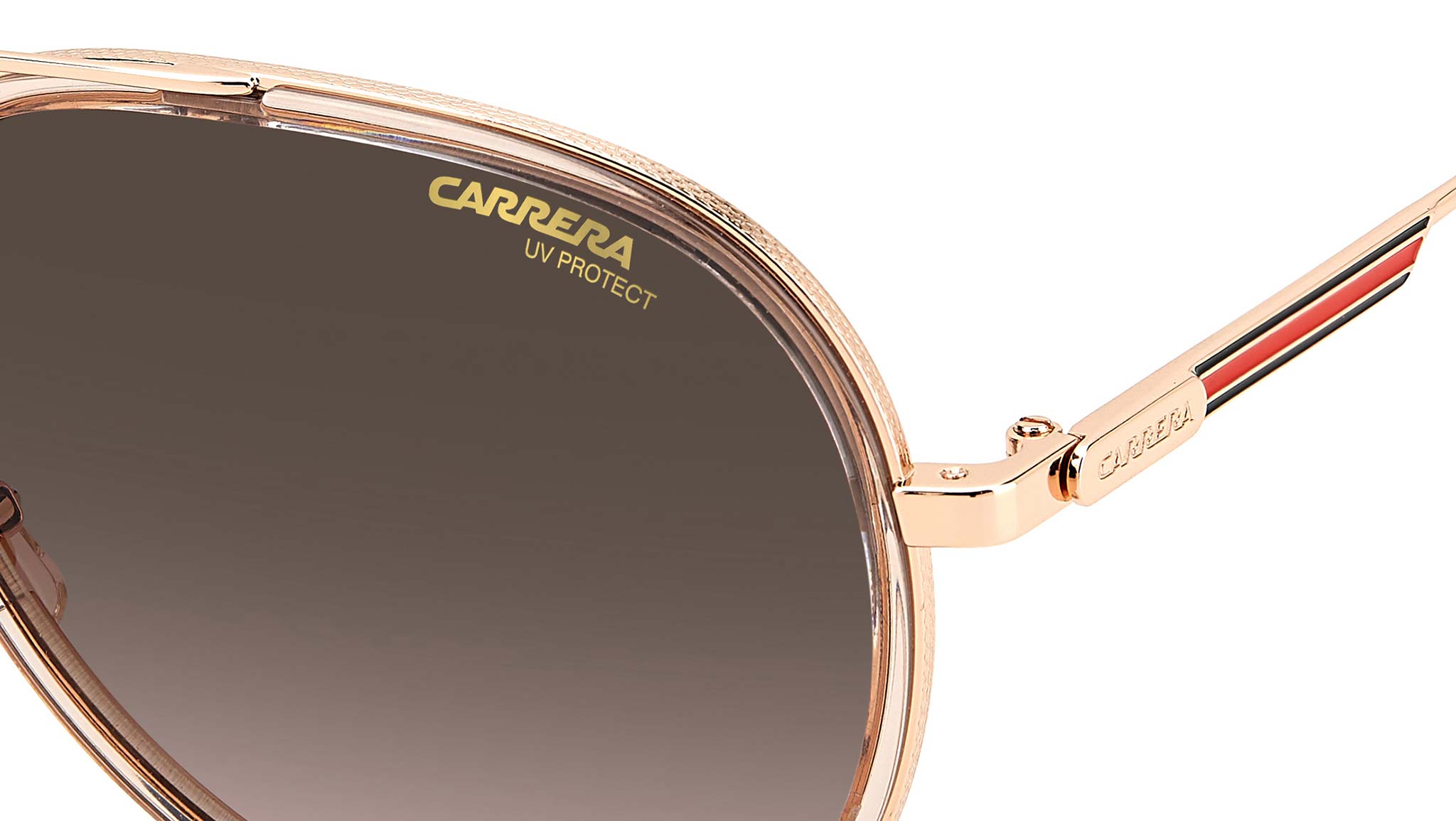 Combining technical expertise with a daring aesthetic, these sunglasses harness the signature Carrera look. The aviator-style teardrop frames are outlined with thick rims and topped with a sleek double nose bridge that adds an element of edge and attitude. If that’s not enough, the brand’s trademark Flag temples ensure a bold, retro look.