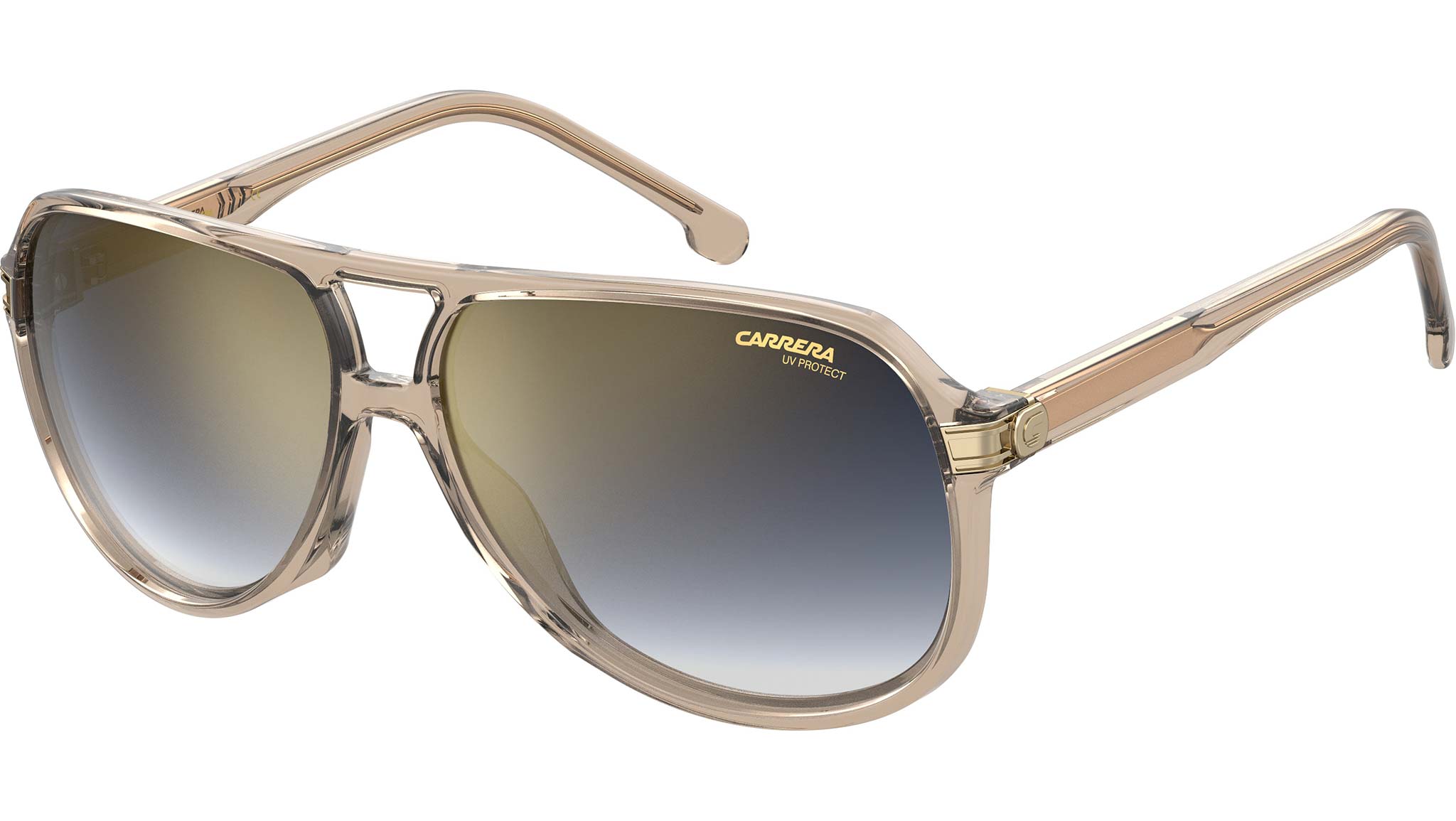 A true standout pair - these aviator sunglasses take the classic Carrera style into a new realm. Designed with a distinctive double nose bridge, they’re shaped from lightweight injection-molded polyamide to an oversized teardrop silhouette. The unique design of the temples energizes the look, mixing the brand’s signature Flag motif with the iconic metal logo plaque for a luxe finish.