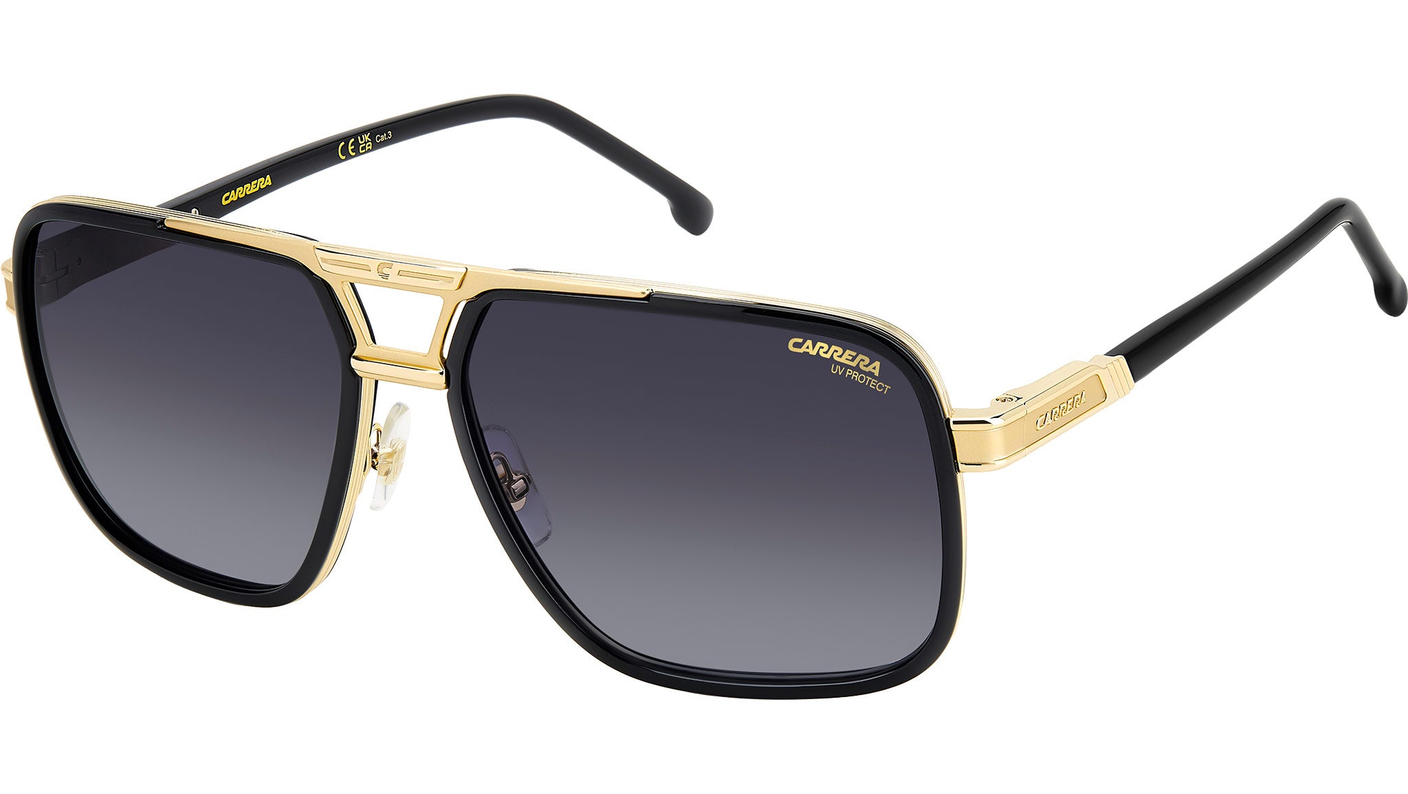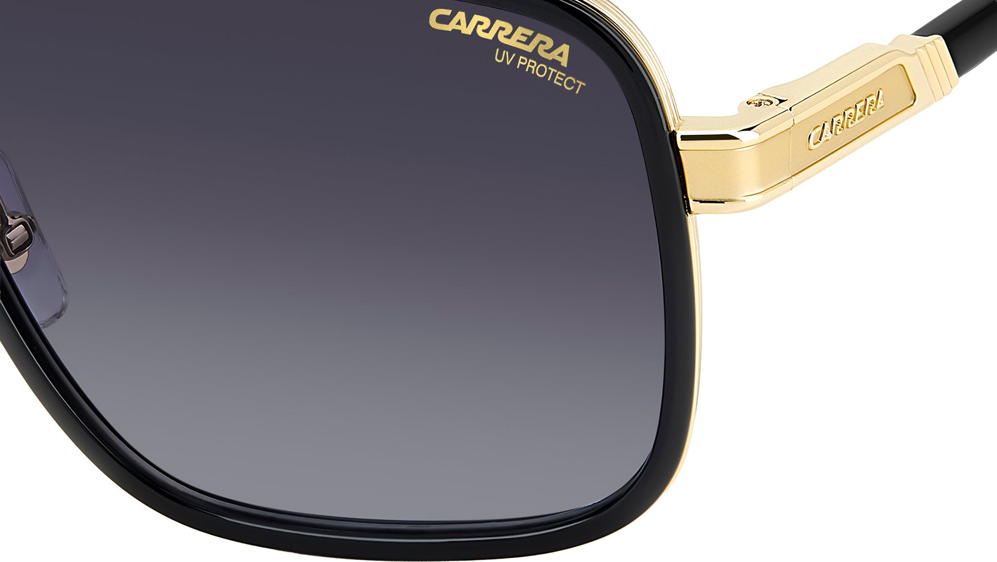 Occhiali da sole Carrera 1071/S 2M2 9O uomo con montatura rettangolare in metallo oro nero e lenti demo. Il carattere deciso di Carrera è espresso da un occhiale da sole. Il fontale navigator è un classico del brand, qui con rivestimento in poliammide iniettata e doppio ponte firmato dal logo “C”. Le aste in metallo presentano il logo scolpito in rilievo e terminali lunghi in acetato. Massima libertà di utilizzo grazie alle cerniere flessibili e alla possibilità di montare lenti graduate. Il modello arriva anche in versione polarizzata. Linea: Flag. Codice modello: 207560. Codice colore: 2M2 9O. Rivenditore autorizzato Carrera online. Gli occhiali vengono consegnati con custodia e accessori originali e sono coperti dalla garanzia ufficiale di 12 mesi del produttore.