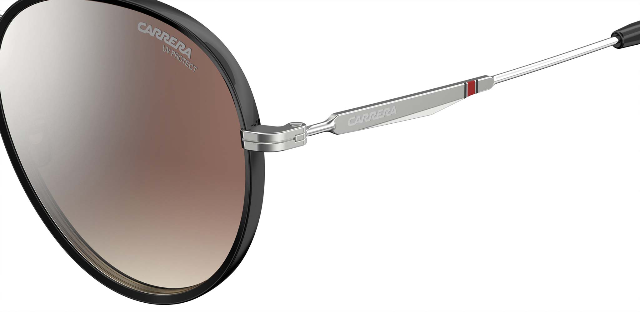 I Carrera 151/S sono occhiali da sole tondi e strutturati in acciaio inossidabile rifinito, nella parte frontale, da un leggero bordo in acetato. Questa combinazione conferisce al modello un tocco contemporaneo che si innesta su un design classico e lineare, estremamente raffinato. Il simbolo della bandiera iconica della Carrera è stampato nella parte centrale sinistra delle aste accompagnato dal logo inciso sulle aste metalliche.
