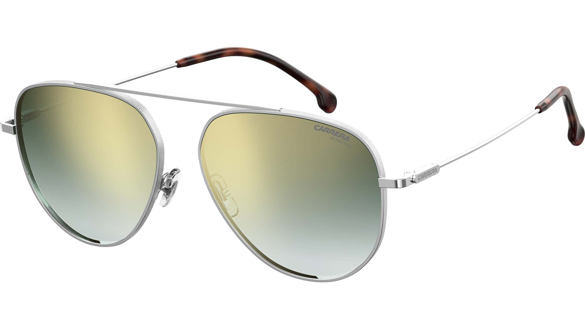 La nuova collezione di occhiali Carrera riesce a ottenere l’impossibile, combinando il massimo comfort con un’estetica elegante. Tutto grazie al Memory Metal – un materiale durevole, leggero e resistente che può essere flesso, piegato e ritorto, ma che torna sempre alla sua forma originaria. Questi occhiali da sole aviator unisex sono completi di lenti specchiate e aste in acetato ricurve che danno al profilo sobrio un tocco contemporaneo. La presenza discreta del marchio, completa questo modello dal fascino vintage fatto per durare nel tempo, con una dose di inconfondibili dettagli Carrera.