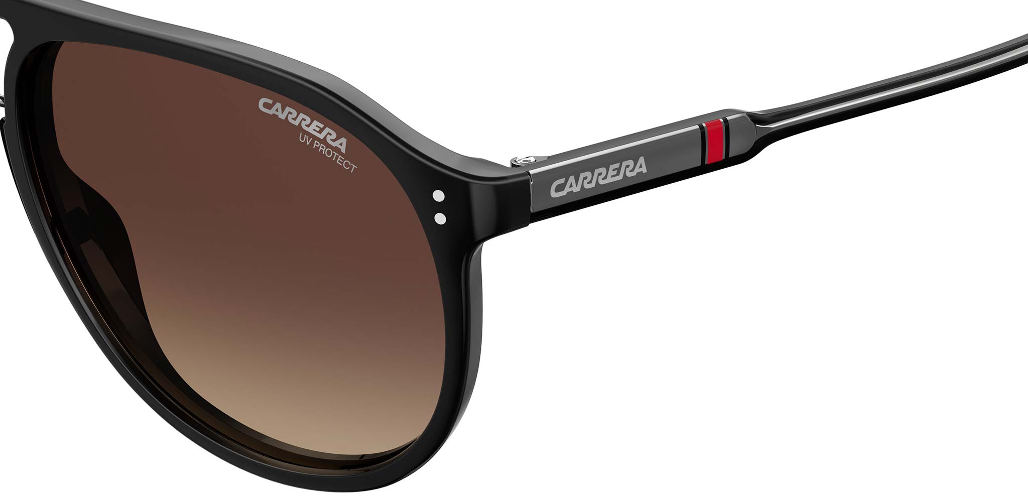 Progettato per ottenere il massimo comfort e un’adattabilità senza pari, l’innovativo materiale Carrera – Optyl – torna in questi occhiali da sole aviator. Leggero, durevole e ipoallergenico, la stagione Autunno Inverno 2019 vede l’introduzione di una nuova colorazione con effetto 3D che fa emergere l’iconica bandiera Carrera, discretamente posizionata all’interno della tempia sinistra. Da scegliere fra un’ampia gamma di lenti anti-UV, incluse le varianti polarizzate e sfumate.