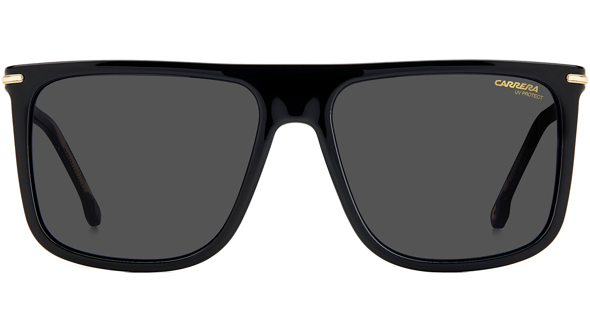 With their classic square shape, toughened up by a flat brow bar, these sunglasses are both characterful and versatile. The minimal rectangular frames are crafted from injection-molded polyamide and finished with Carrera’s signature detailing: the trademark ‘grid’ texture on the inner arms and the intricate design of the temples, inspired by the brand’s distinguished heritage. A set of interchangeable flex hinges guarantees comfort, durability, and easy maintenance.