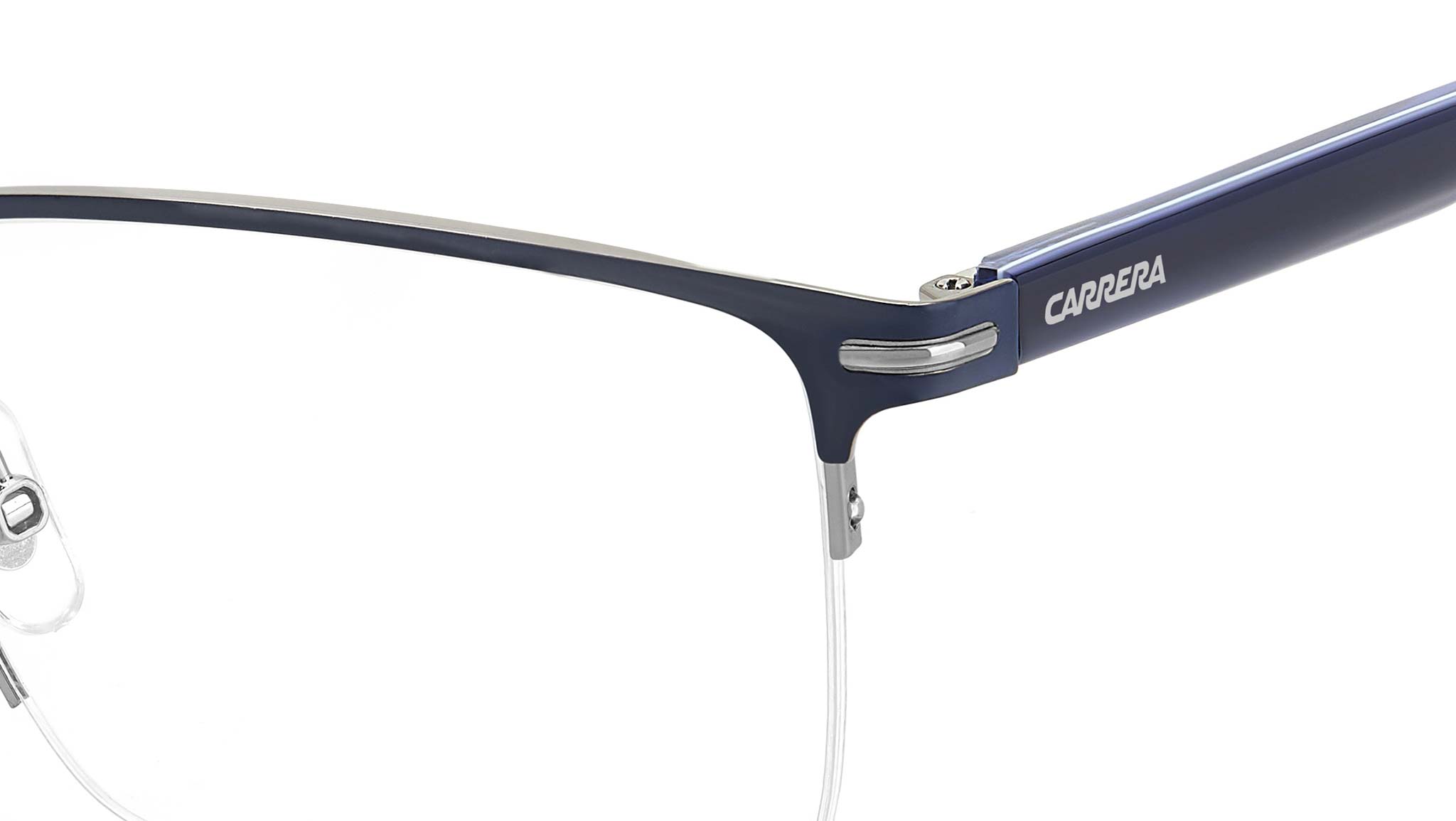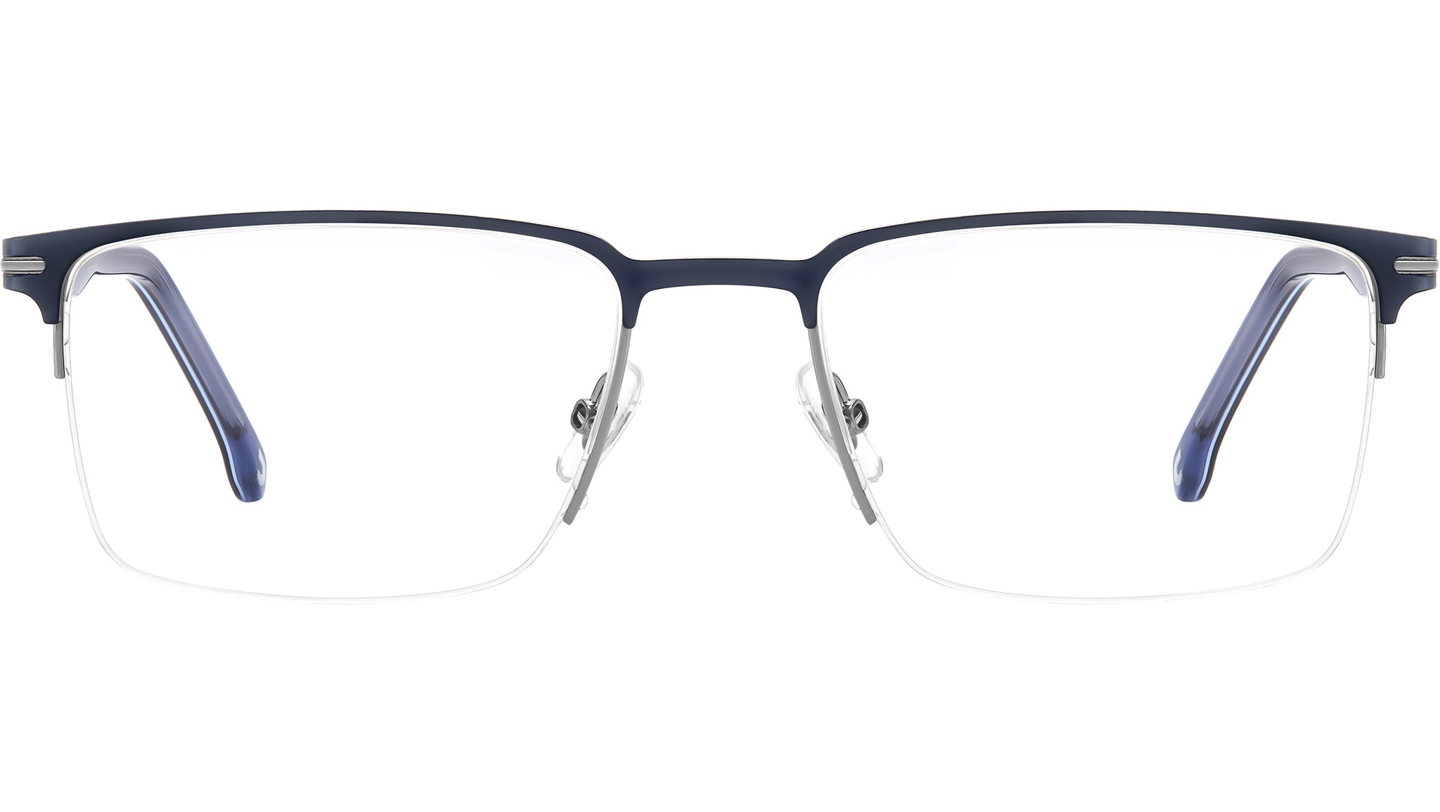 Occhiali da vista Carrera 325 FLL uomo con montatura rettangolare in metallo blu opaco e lenti demo. Il perfetto paio di occhiali da vista, da abbinare a tutti i look, unisce estetica e funzionalità. Carrera lancia questa proposta interessante: frontale piatto a mezza montatura in acciaio inossidabile, in una forma rettangolare molto maschile. Le aste sono in acetato, disponibili nelle colorazioni classiche oppure multistrato, sempre firmate dal logo esteso. Il fit è personalizzato grazie a naselli regolabili, cerniere flessibili e la possibilità di scegliere tra due calibri. Linea: Signature. Codice modello: 108073. Codice colore: FLL. Rivenditore autorizzato Carrera online. Gli occhiali vengono consegnati con custodia e accessori originali e sono coperti dalla garanzia ufficiale di 12 mesi del produttore.