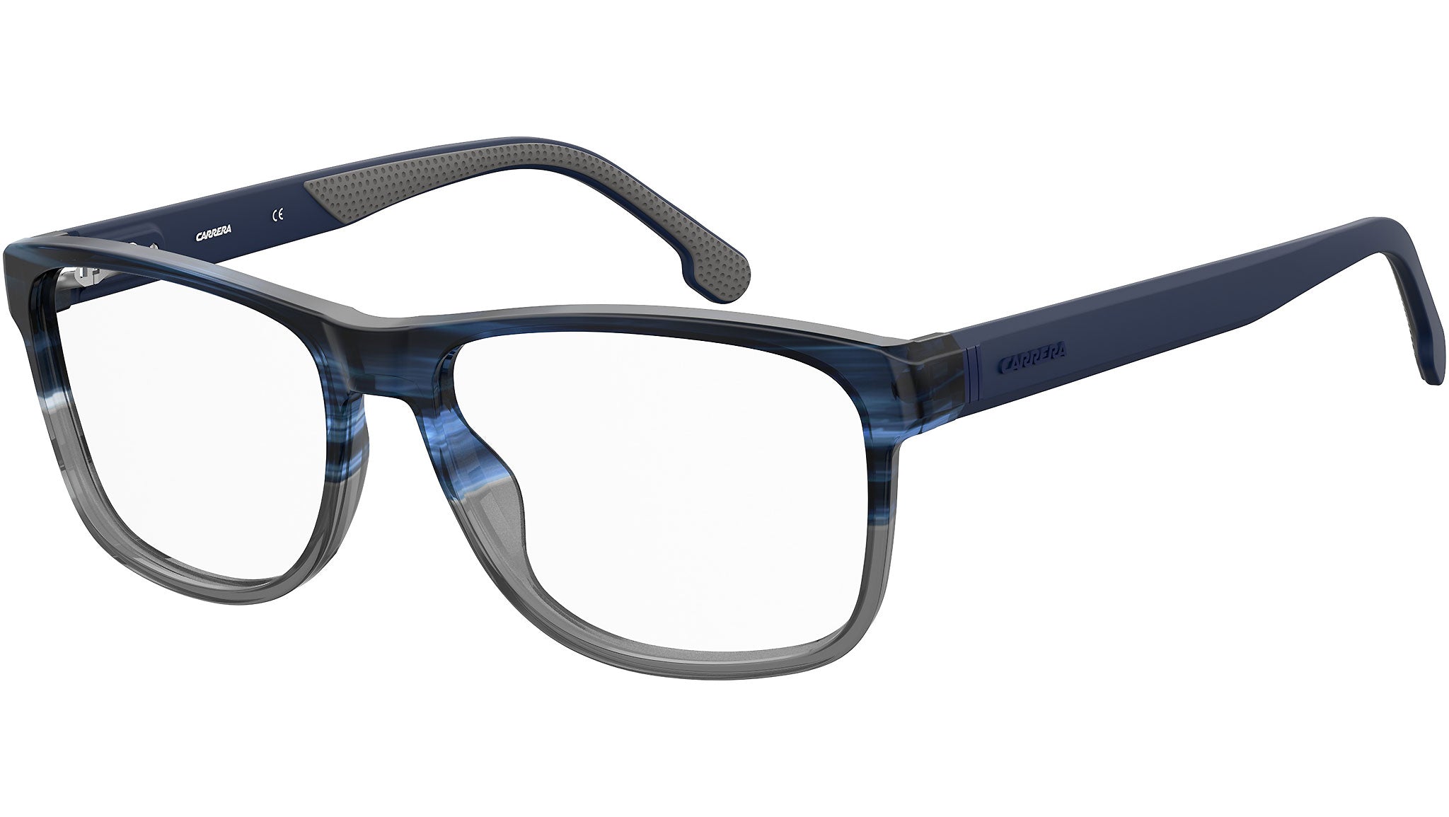 Questi occhiali da vista da uomo puntano sullo stile, il comfort e la versatilità in egual misura. La montatura squadrata è sapientemente realizzata attraverso un processo di stampo a doppia iniezione, che risulta in un moderno mix di finiture e texture. La costruzione in acetato è completata da cerniere flessibili e impugnature in gomma antiscivolo che garantiscono comfort e stabilità, mentre il caratteristico branding Carrera sulle tempie aggiunge un raffinato tocco finale.