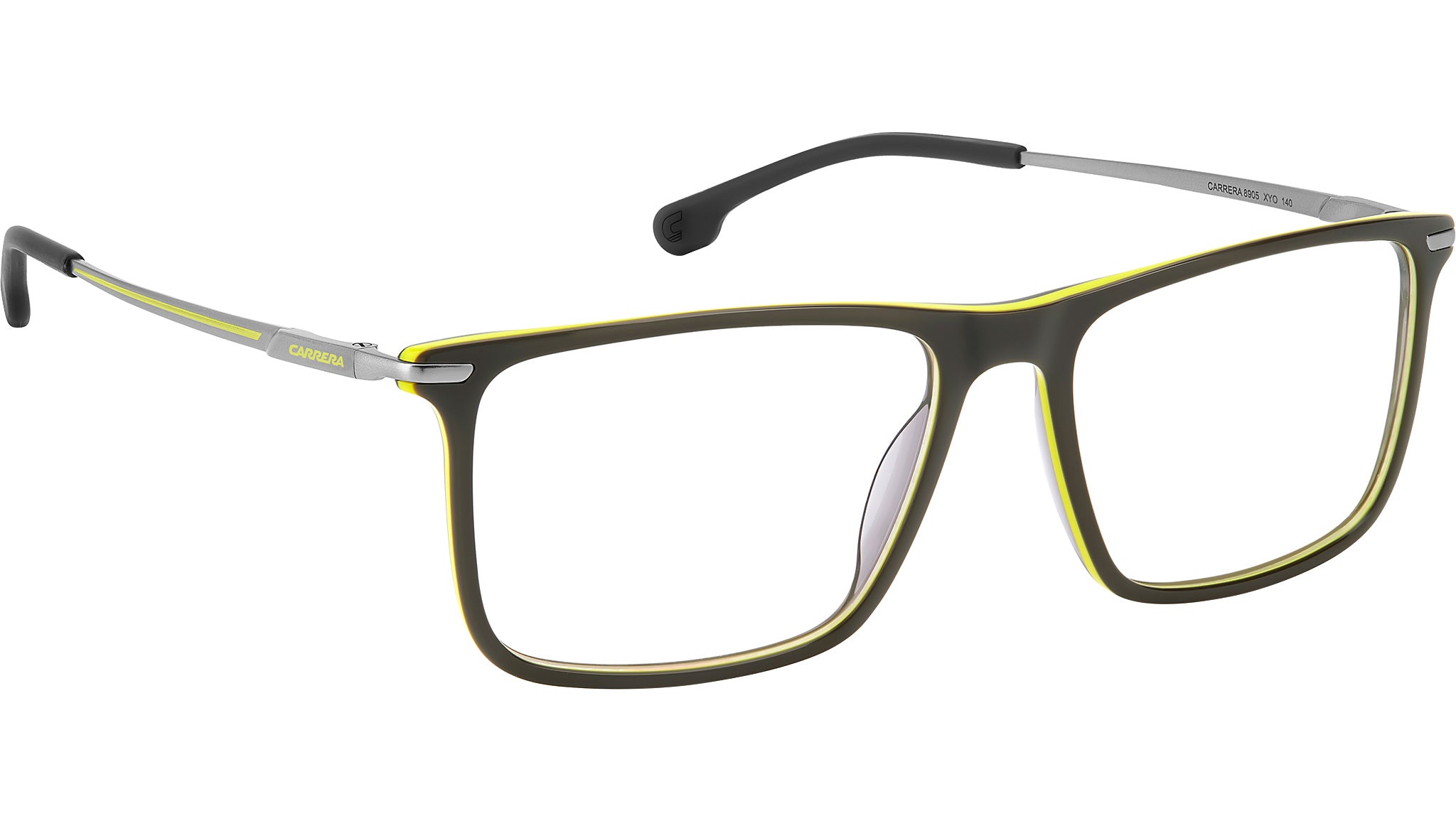 Occhiali da vista Carrera 8905 XYO uomo con montatura rettangolare in acetato grigio giallo e lenti demo. Materiali premium e una costruzione di qualità determinano un occhiale da vista Carrera. Sono progettati per il comfort, con frontale in leggero acetato con profili ridotti dall’effetto leggerezza assicurato. Il modello non teme l’uso quotidiano: le aste in Memory Metal tornano sempre alla posizione originale, anche quando vengono stressate e piegate. Ciascuno può scegliere la propria variante colore, sempre esaltata dal logo e dalla flag Carrera in doppio colore. Linea: Sport. Codice modello: 108127. Codice colore: XYO. Rivenditore autorizzato Carrera online. Gli occhiali vengono consegnati con custodia e accessori originali e sono coperti dalla garanzia ufficiale di 12 mesi del produttore.