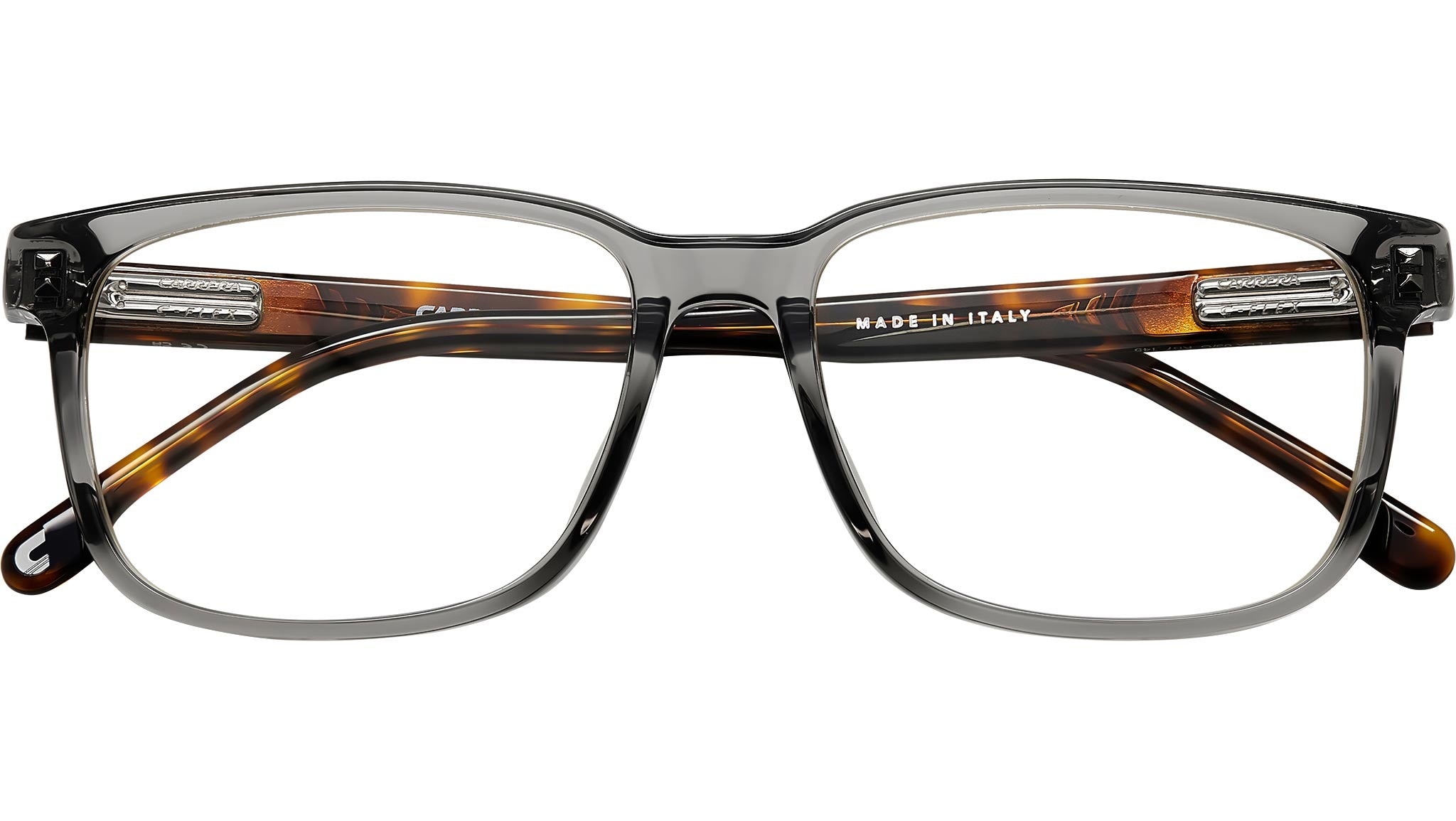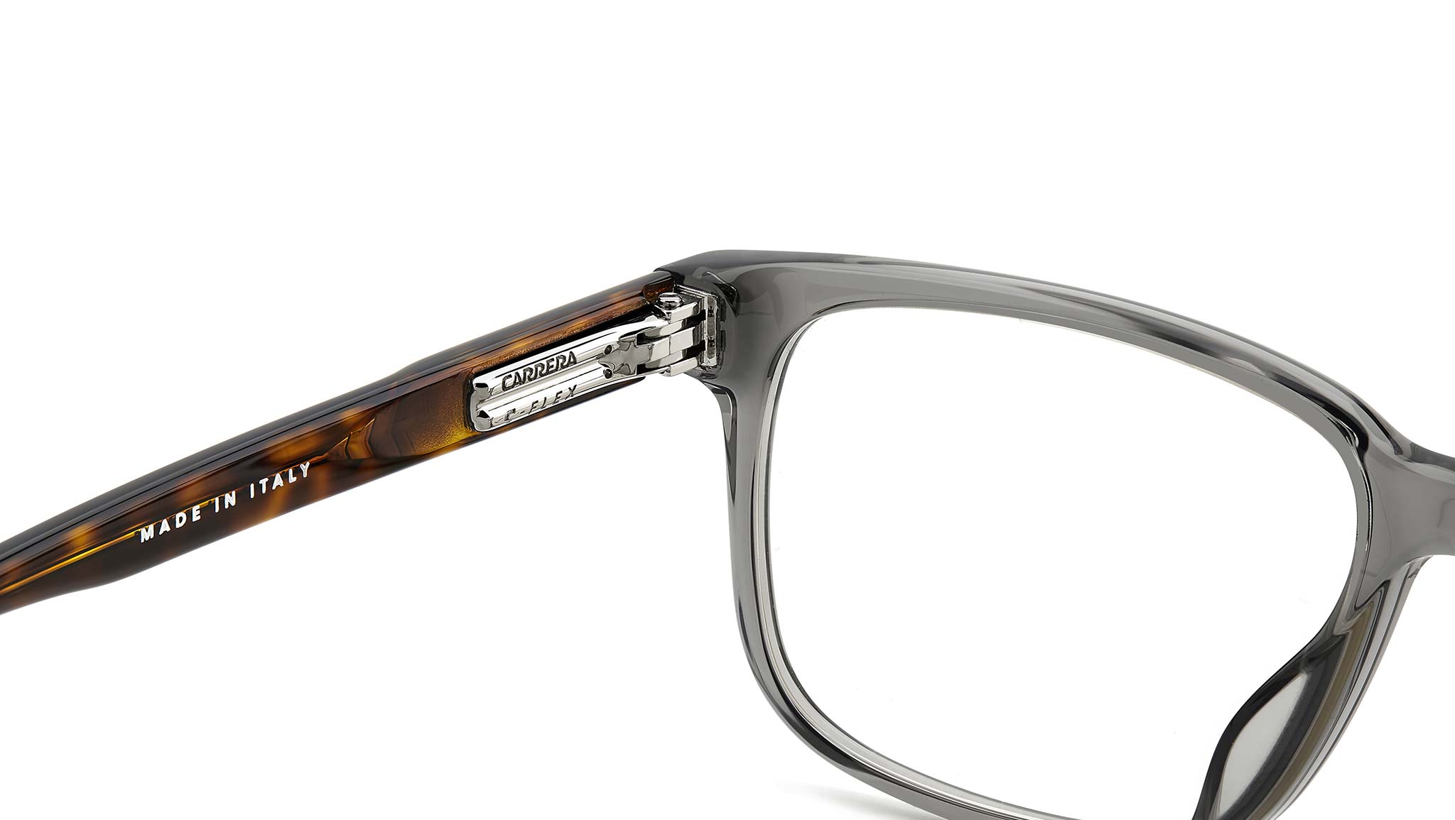 Occhiali da vista Carrera C FLEX 03/G KB7 uomo con montatura rettangolare in acetato grigio e lenti demo. Linea: Signature. Codice modello: 108077. Codice colore: KB7. Rivenditore autorizzato Carrera online. Gli occhiali vengono consegnati con custodia e accessori originali e sono coperti dalla garanzia ufficiale di 12 mesi del produttore.