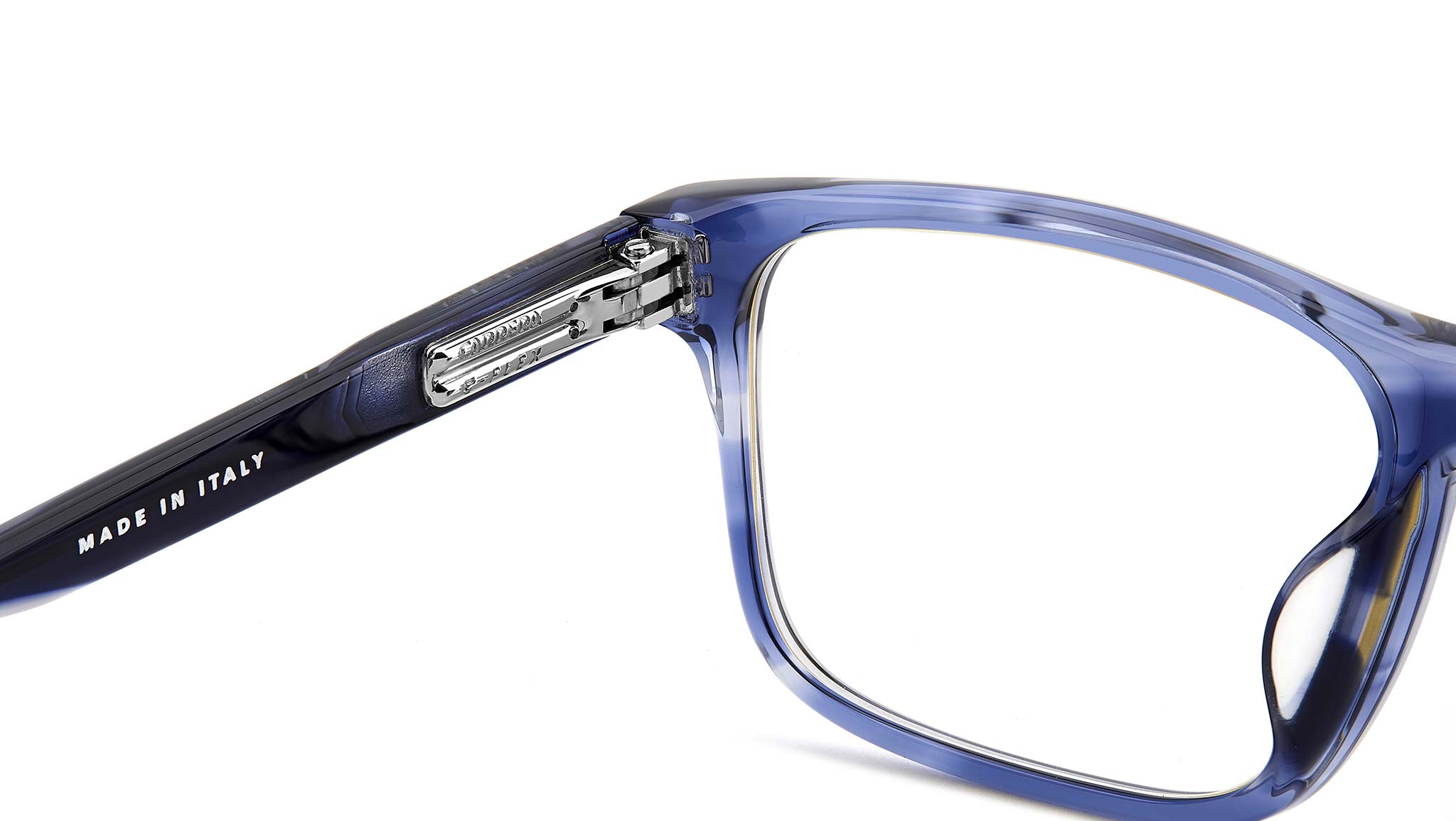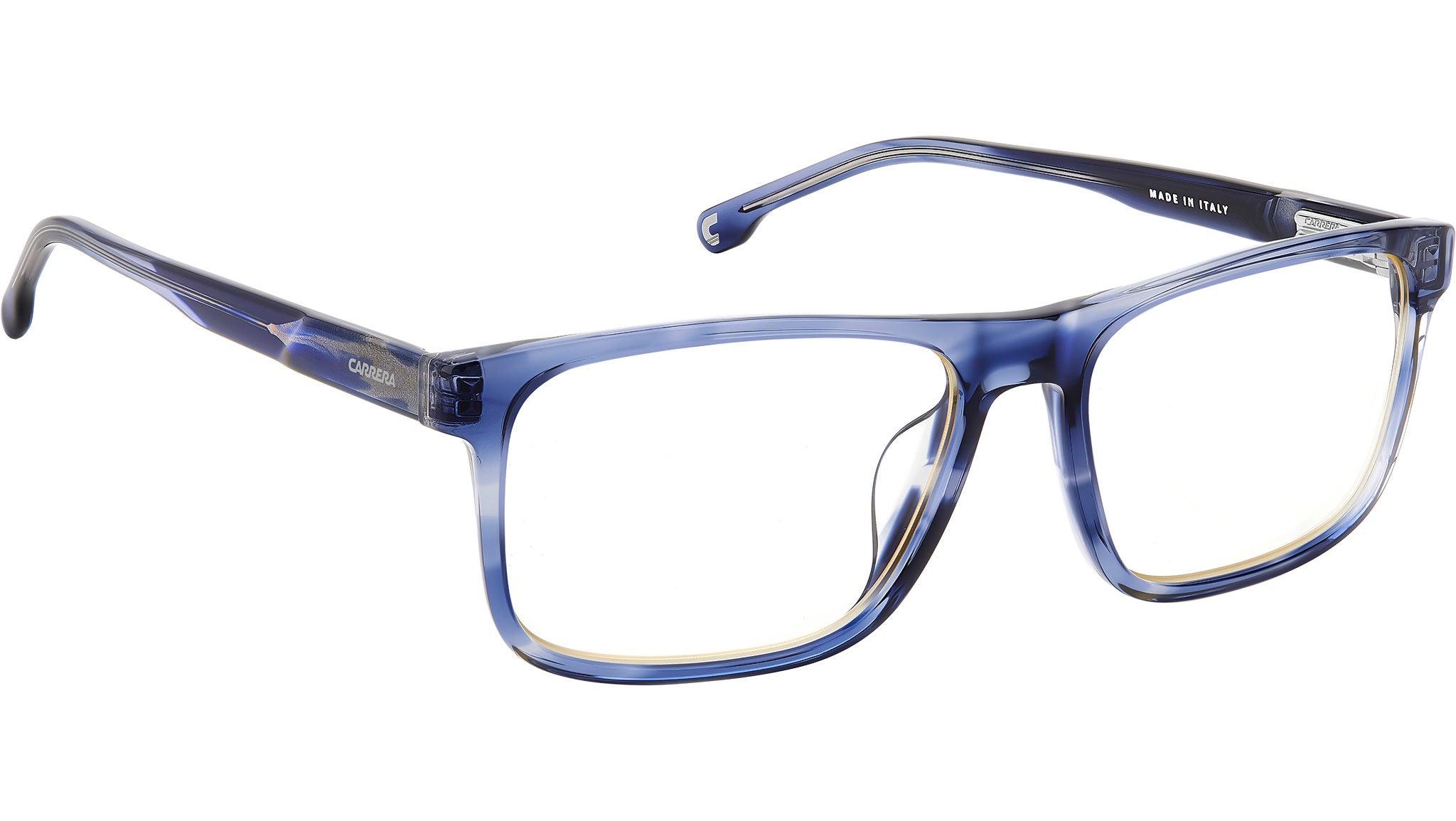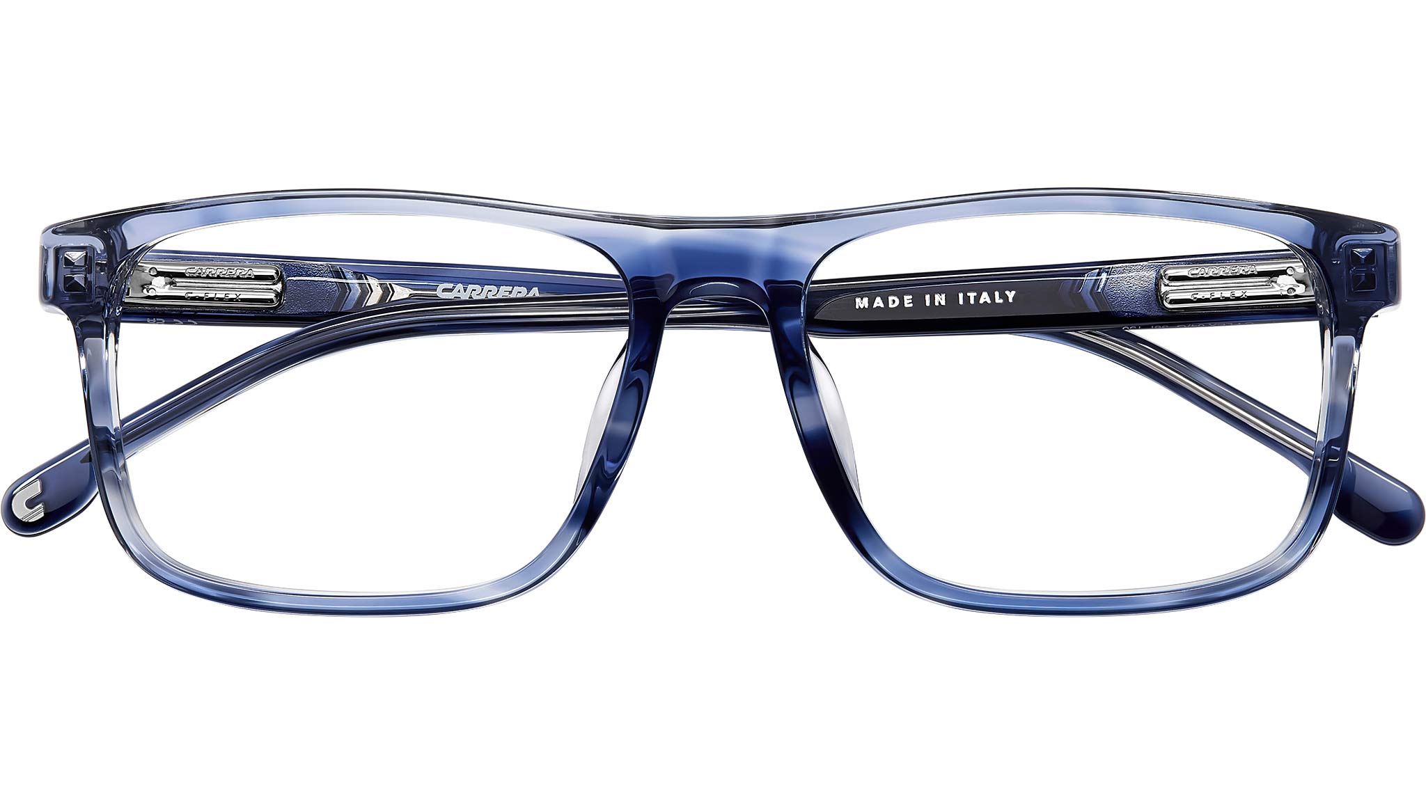 Occhiali da vista Carrera C FLEX 04/G 38I uomo con montatura rettangolare in acetato corno blu e lenti demo. Linea: Signature. Codice modello: 108078. Codice colore: 38I. Rivenditore autorizzato Carrera online. Gli occhiali vengono consegnati con custodia e accessori originali e sono coperti dalla garanzia ufficiale di 12 mesi del produttore.