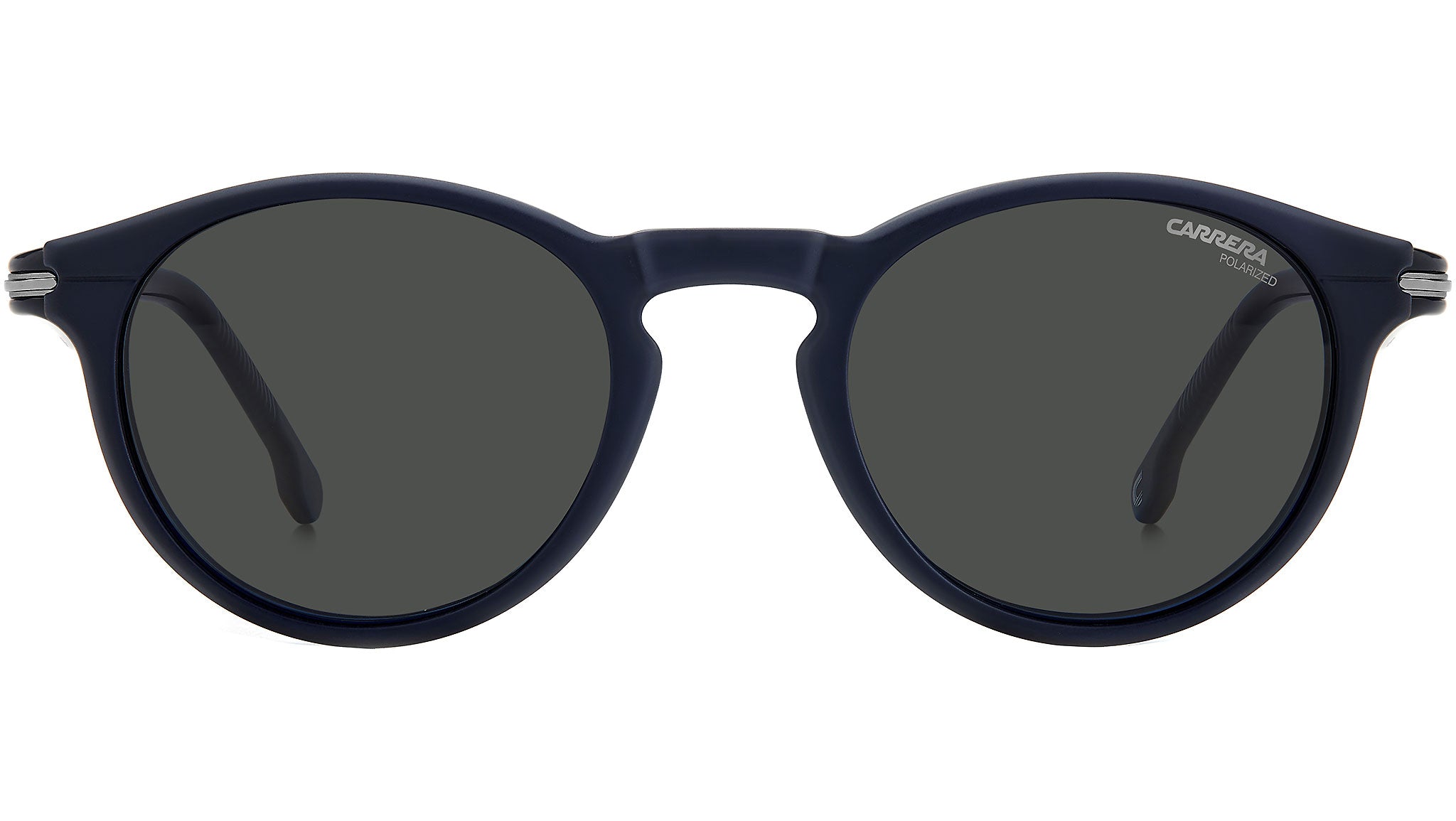 These unisex sunglasses update the classic pantos frames with a series of Carrera’s design details: the unique fin-shaped temples and the contrasting metal wire core along the inner arms, enriched by the iconic ‘grid’ texture on the tips. Accented with shiny metal trims for a sophisticated touch, they're available with gradient, solid, and polarized lenses, and a range of colorways, including a seasonal matte black finish. The interchangeable flex hinges ensure exceptional comfort.