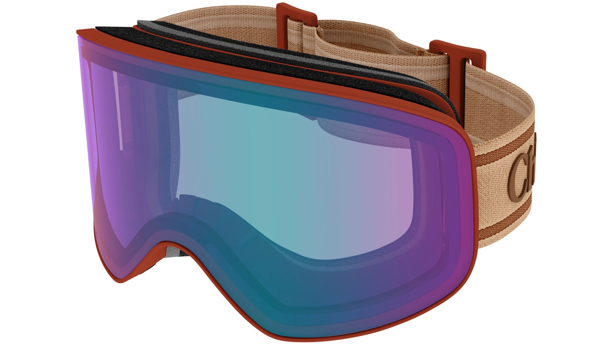 Maschera da sci Chloé modello CH0072S shield in iniettato codice colore 003 ruggine tinta unita opaco con aste color marrone e lenti color arancione tinta unita + maschera cilindrica da sci blu multistrato.