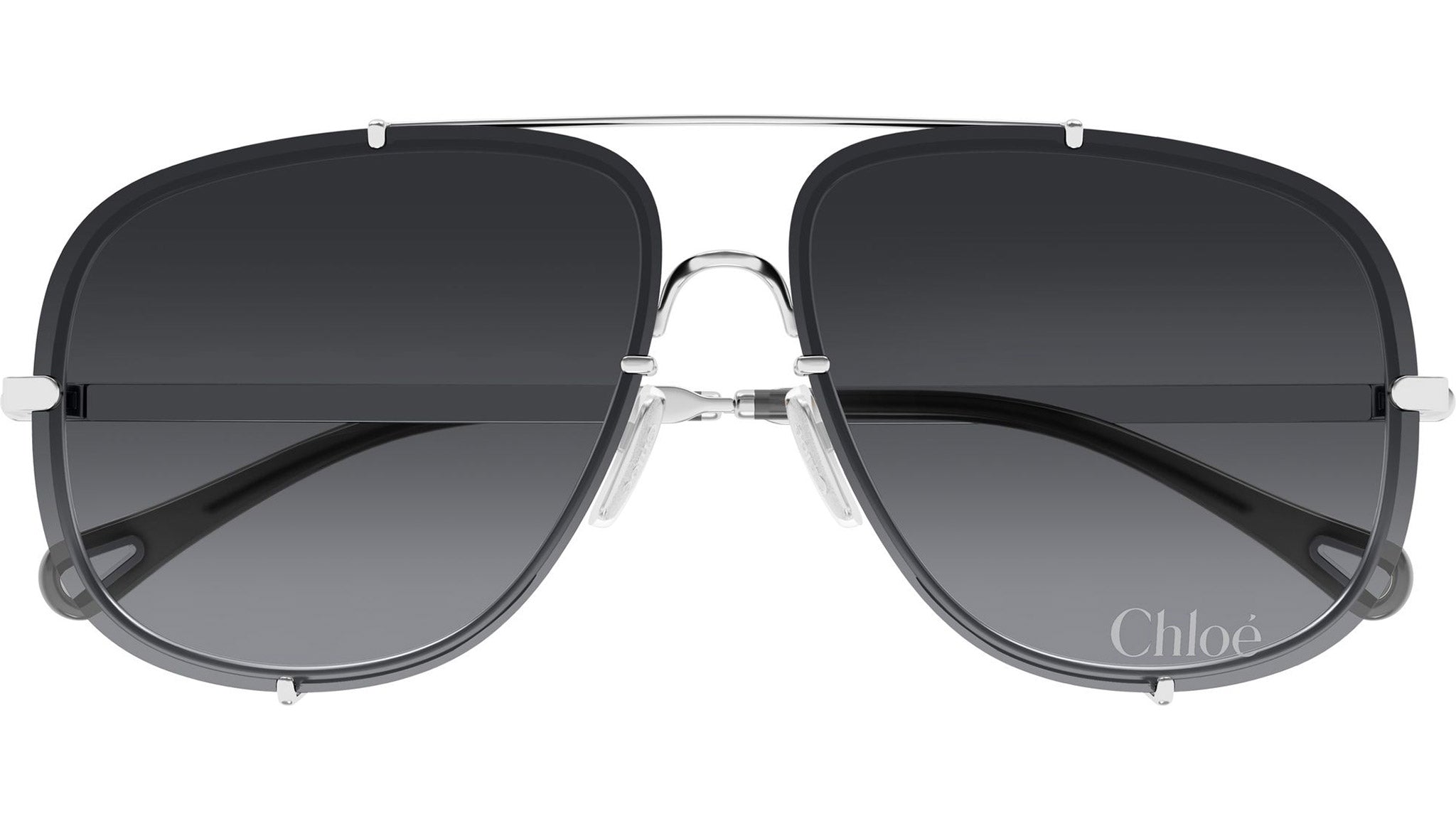 Occhiali da sole Chloé CH0348S 002 donna con montatura aviatore in metallo argento lucido e lenti grigio sfumato. Linea: Chloé. Codice modello: CH0348S. Codice colore: 002. Made in Italy. Rivenditore autorizzato Chloé online. Gli occhiali vengono consegnati con custodia e accessori originali e sono coperti dalla garanzia ufficiale di 12 mesi del produttore.