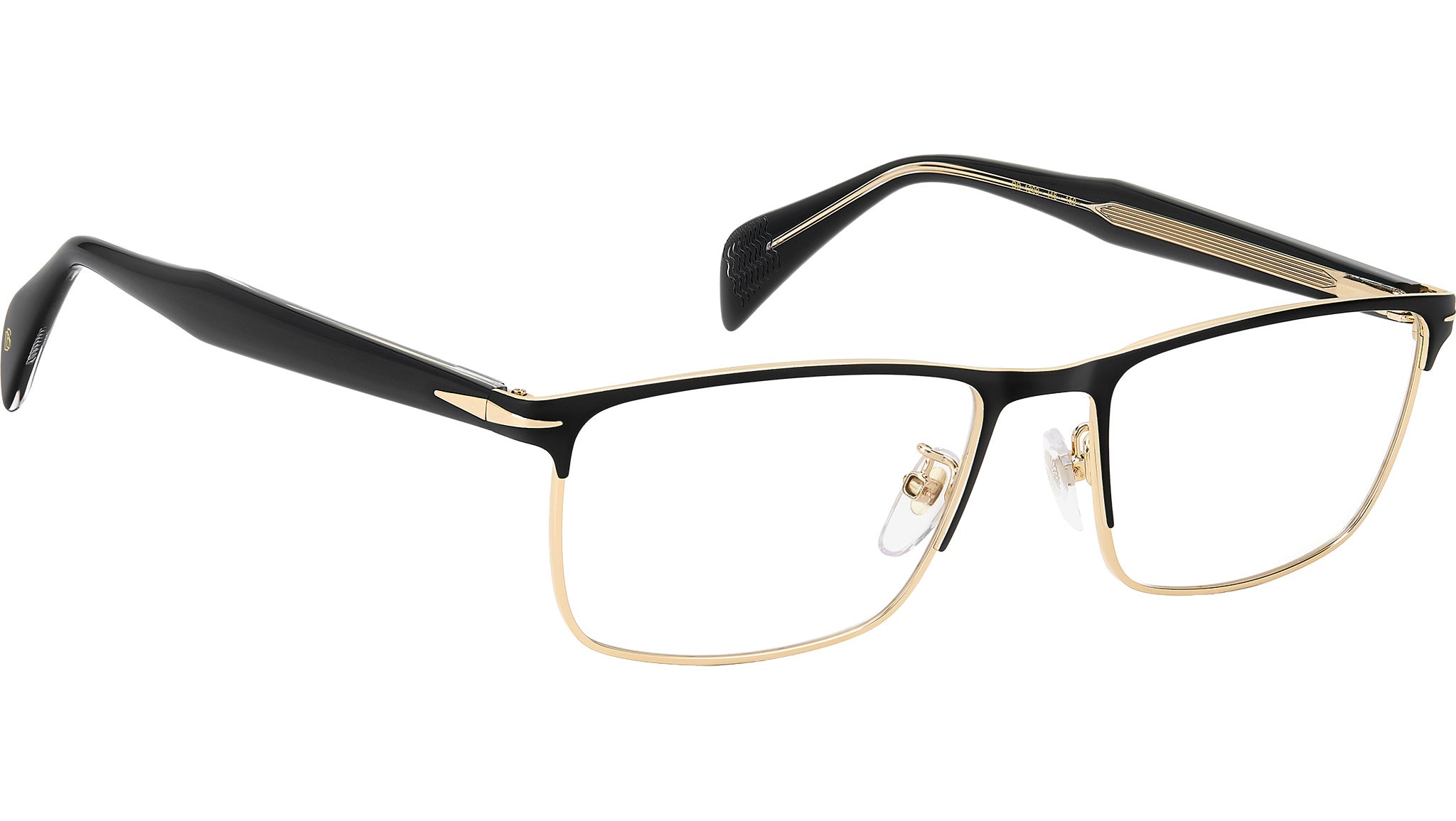 Occhiali da vista David Beckham DB 1209 I46 uomo con montatura rettangolare in metallo nero opaco oro e lenti lenti demo. Linea: Timeless Icons. Codice modello: 109787. Codice colore: I46. Made in CN. Rivenditore autorizzato David Beckham online. Gli occhiali vengono consegnati con custodia e accessori originali e sono coperti dalla garanzia ufficiale di 12 mesi del produttore.