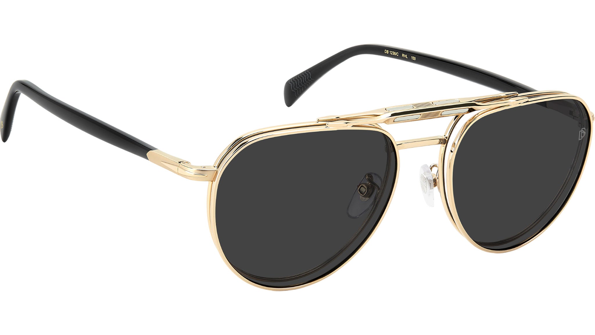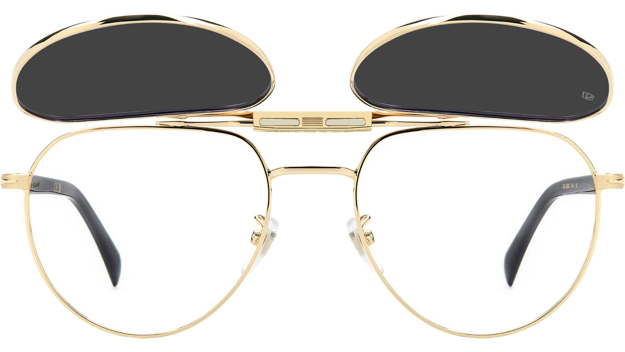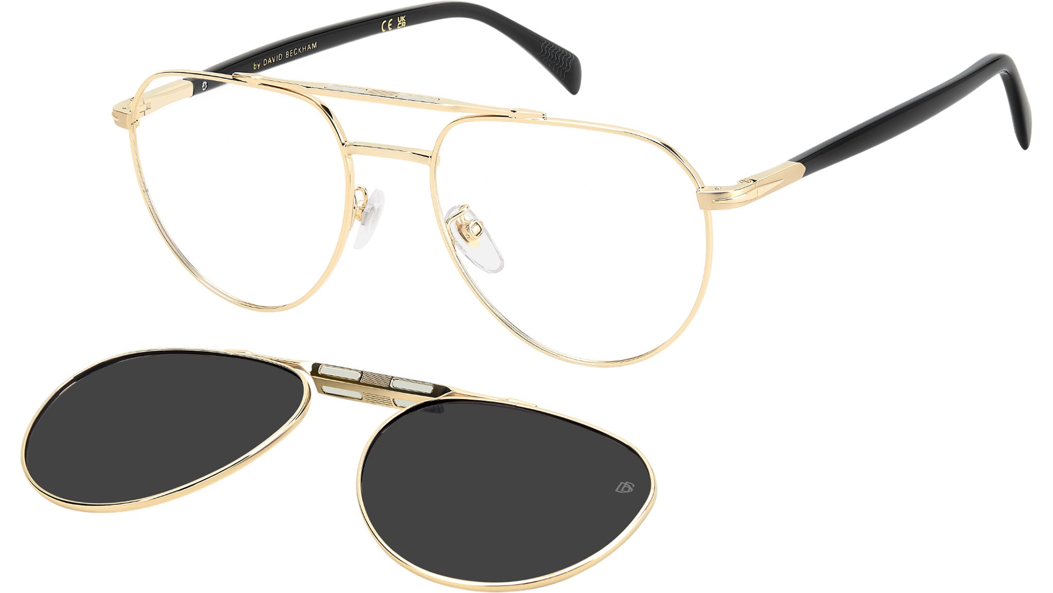 Occhiali da vista David Beckham DB 1238/C RHL Clip uomo con montatura aviatore in metallo oro nero e lenti demo. Gli occhiali da vista Eyewear by David Beckham sono l’evoluzione di un concept best-seller. Il frontale pilot coniuga estetica e funzionalità, progettato per montare in un gesto le lenti da sole polarizzate clip-on. Il modello è parte della famiglia Curator, caratterizzata da aste con motivo cesellato dal feeling lussuoso. Linea: Timeless Icons. Codice modello: 110766. Codice colore: RHL. Rivenditore autorizzato David Beckham online. Gli occhiali vengono consegnati con custodia e accessori originali e sono coperti dalla garanzia ufficiale di 12 mesi del produttore.