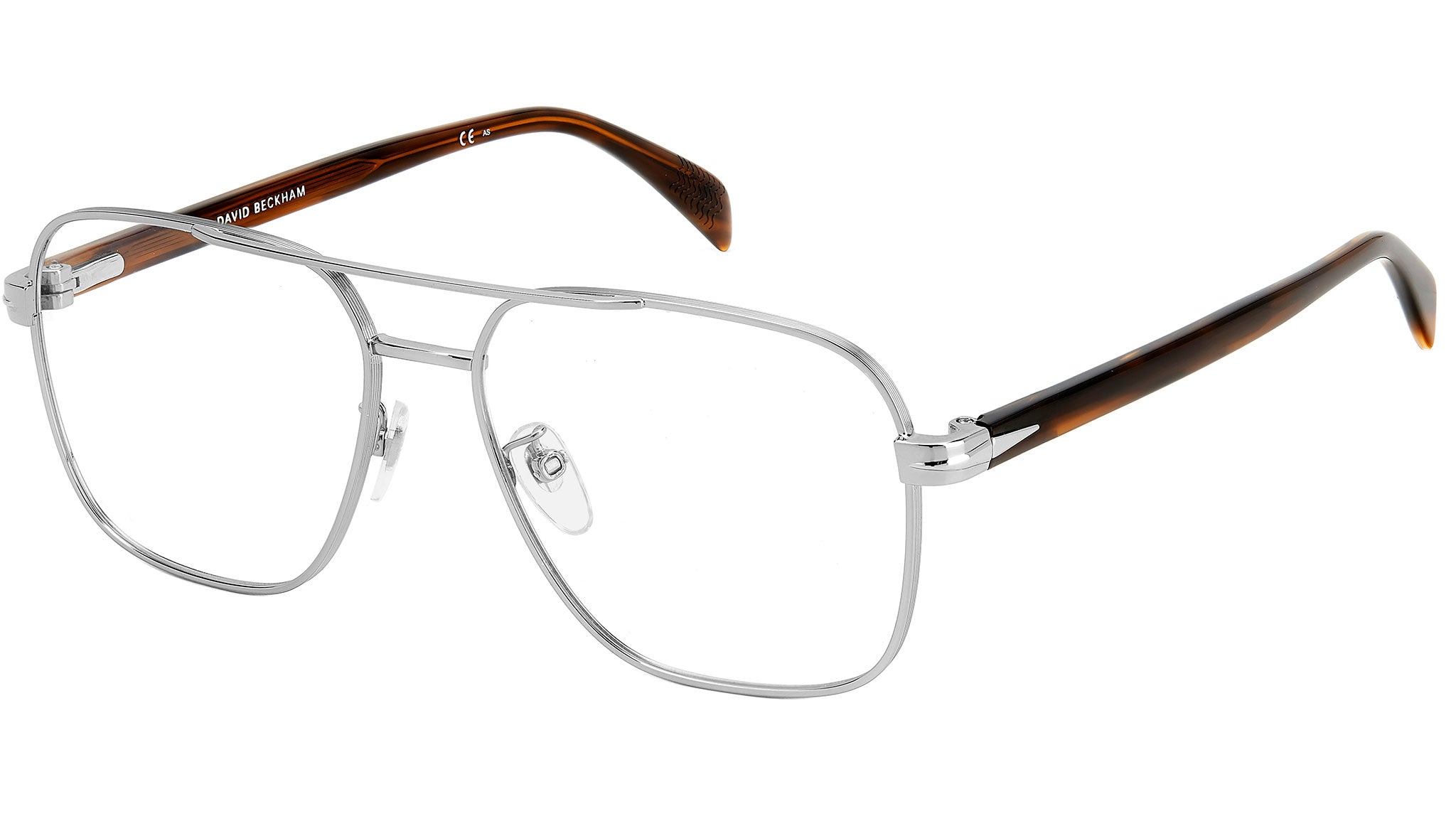 Questi occhiali in metallo a doppio ponte presentano proporzioni audaci che ne evidenziano l'eleganza senza tempo. L'iconico rombo stilizzato del marchio si estende dal frontale squadrato e curvilineo fino alle aste, che presentano l'anima in filo metallico cesellato e il marchio David Beckham. Un monogramma DB impreziosisce le estremità, modellate in modo da risultare comode in ogni occasione.