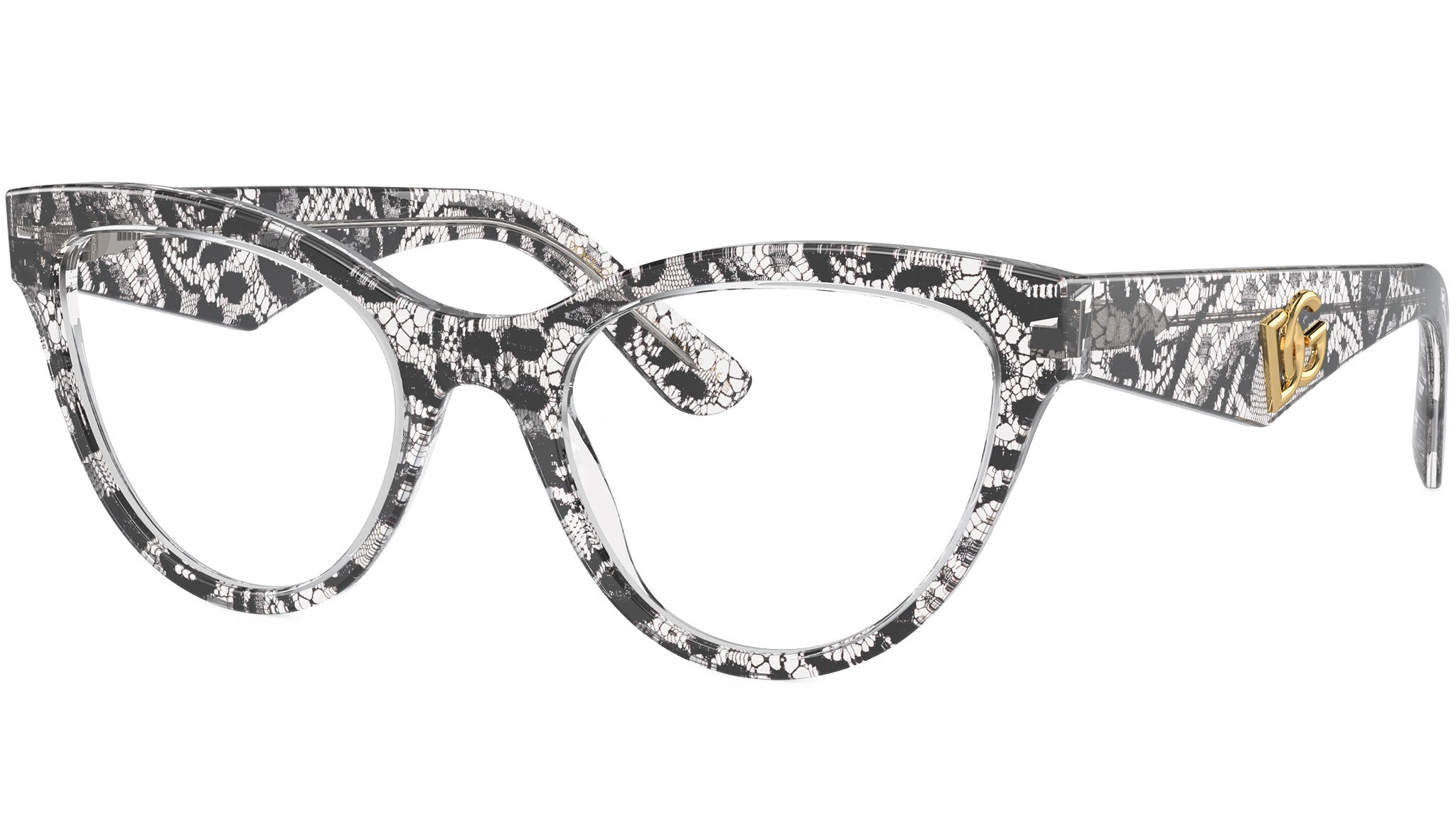 Occhiali da vista Dolce&Gabbana modello DG 3372 linea Dna codice colore 3287 pizzo nero in acetato forma butterfly con aste color pizzo nero.