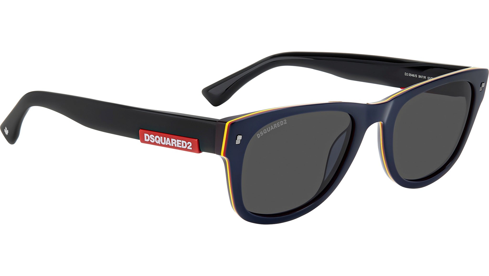Occhiali da sole Dsquared2 D2 0046/S 9N7 IR uomo con montatura rettangolare in acetato blu e lenti demo. Sono occhiali da sole dallo stile senza tempo adatti a caratteri disinvolti. Ogni occasione è buona per calzarli: hanno montatura sottile in acetato con aste bold e frontali dalle forme classiche firmati dagli iconici rivetti in metallo. Tratti distintivi di questi occhiali sono la targhetta loggata sulle aste, ispirata all’etichetta dei jeans, la foglia d’acero sui terminali e il logo Dsquared2 sulla lente destra da sole. Linea: Dynamic. Codice modello: 205531. Codice colore: 9N7 IR. Rivenditore autorizzato Dsquared2 online. Gli occhiali vengono consegnati con custodia e accessori originali e sono coperti dalla garanzia ufficiale di 12 mesi del produttore.