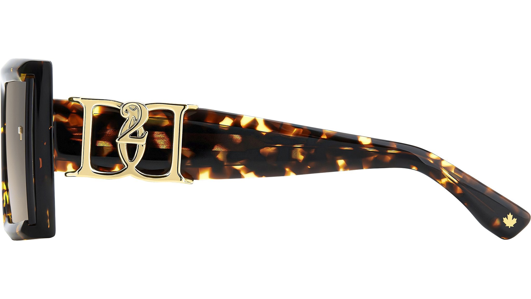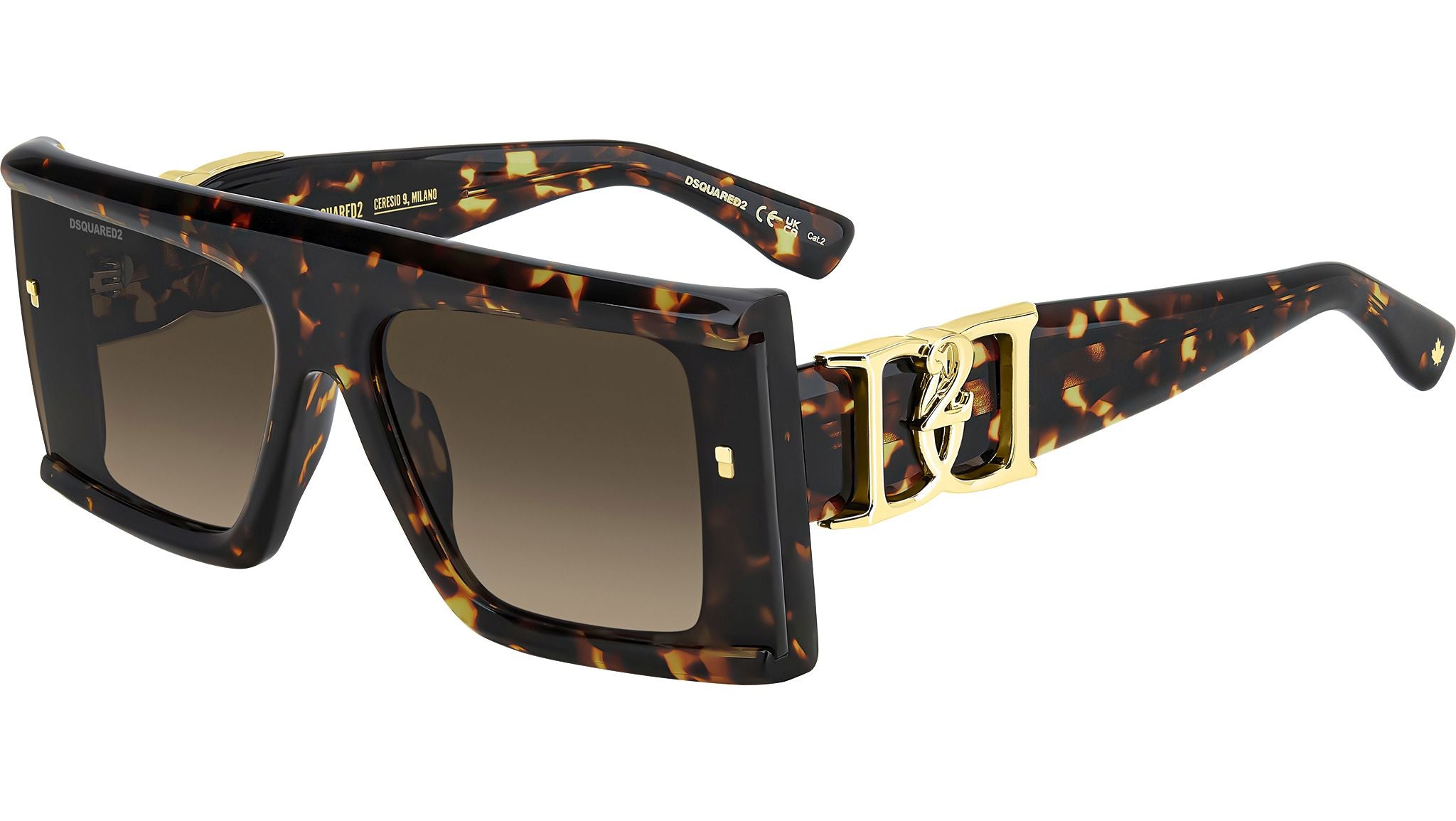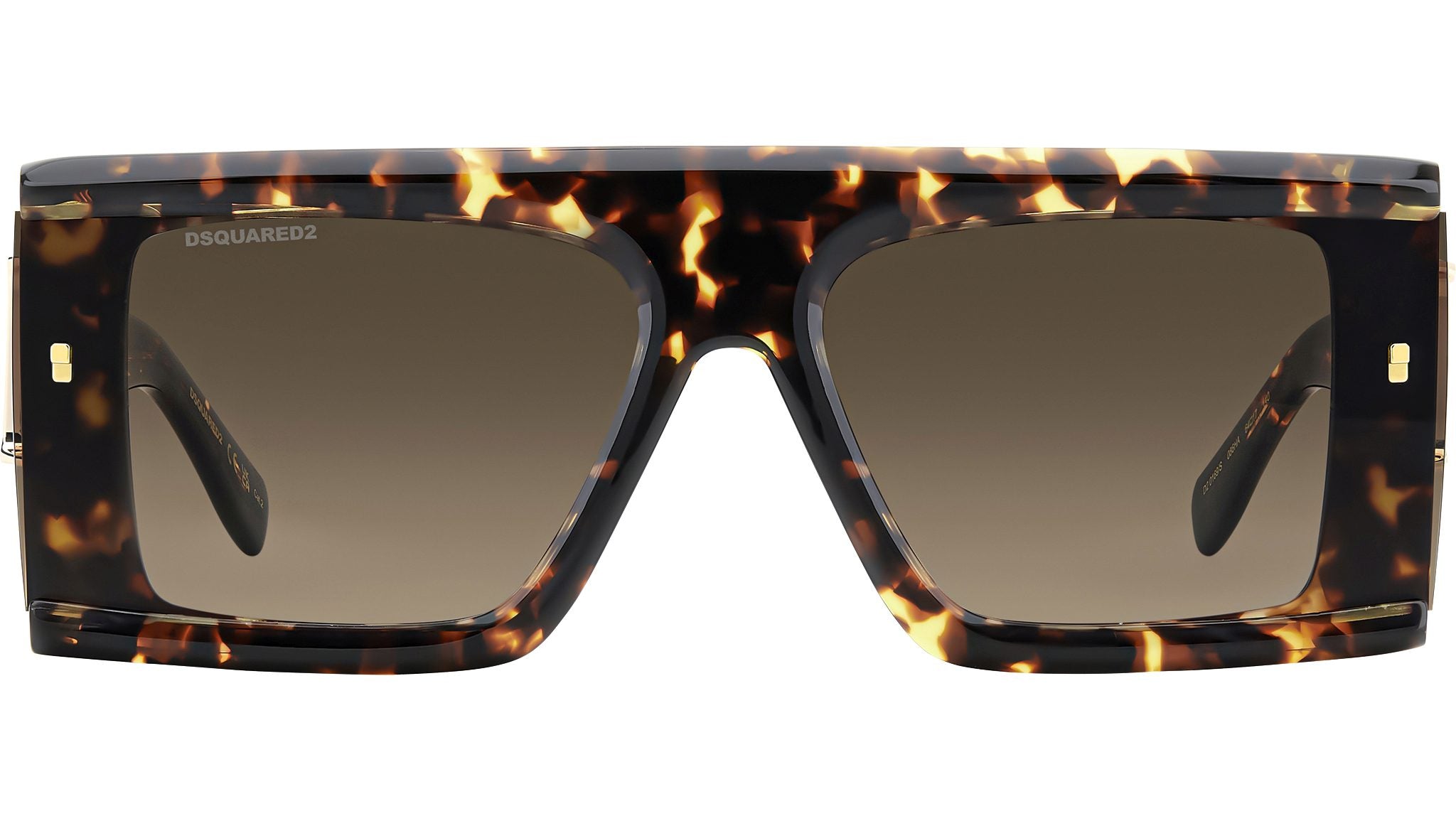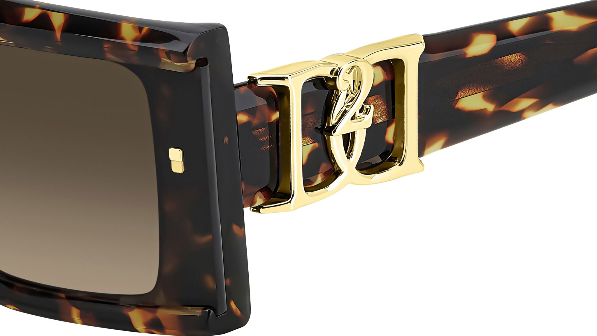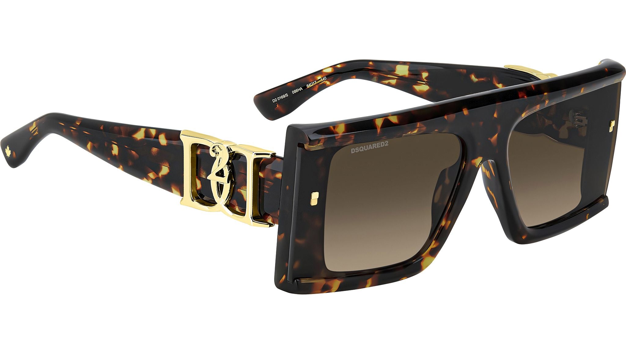 Occhiali da sole Dsquared2 D2 0169/S 086 HA donna con montatura rettangolare in acetato avana e lenti demo. Occhiali da sole donna Dsquared2 dalla costruzione plastica e scultorea. Il frontale è un capolavoro di design: decisamente bold, con volumi pieni, lenti aperte ai lati, rivetti squadrati in metallo. Il nuovo logo con le due D intrecciate abbraccia le aste, incastonato come un gioiello metallico. La montatura arriva anche nella variante realizzata con la tecnica della termoformatura, composta da due strati di acetato dal finish a contrasto. Linea: Hype. Codice modello: 207905. Codice colore: 086 HA. Rivenditore autorizzato Dsquared2 online. Gli occhiali vengono consegnati con custodia e accessori originali e sono coperti dalla garanzia ufficiale di 12 mesi del produttore.