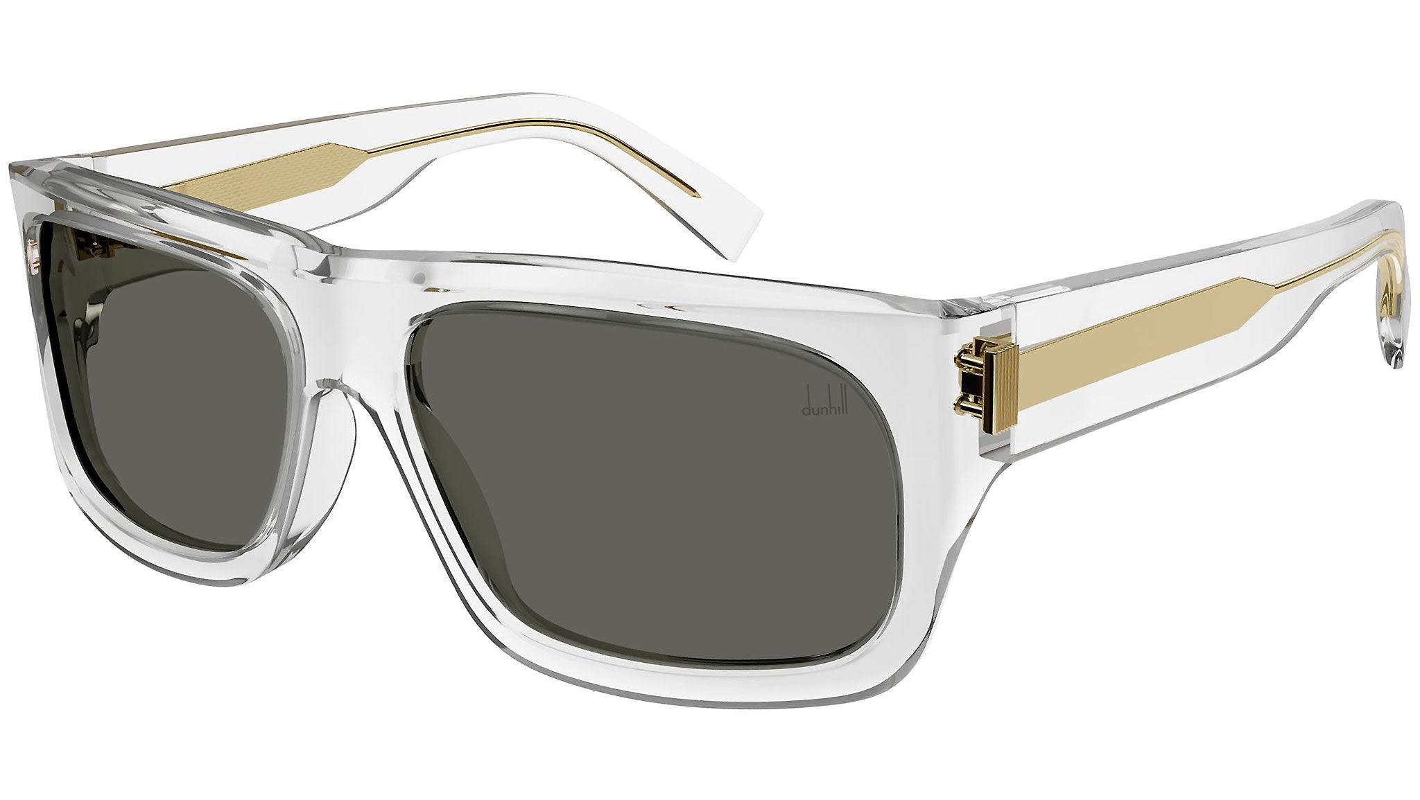 Occhiali da sole Dunhill modello 0033S, variante colore 003 cristallo lucido con lenti color grigio tinta unita. Un marchio autentico, incentrato su un design curato e sofisticato. Dunhill rappresenta una delle firme britanniche più riconoscibili nel panorama dell’eyewear, vera icona in materia di lusso e lifestyle.