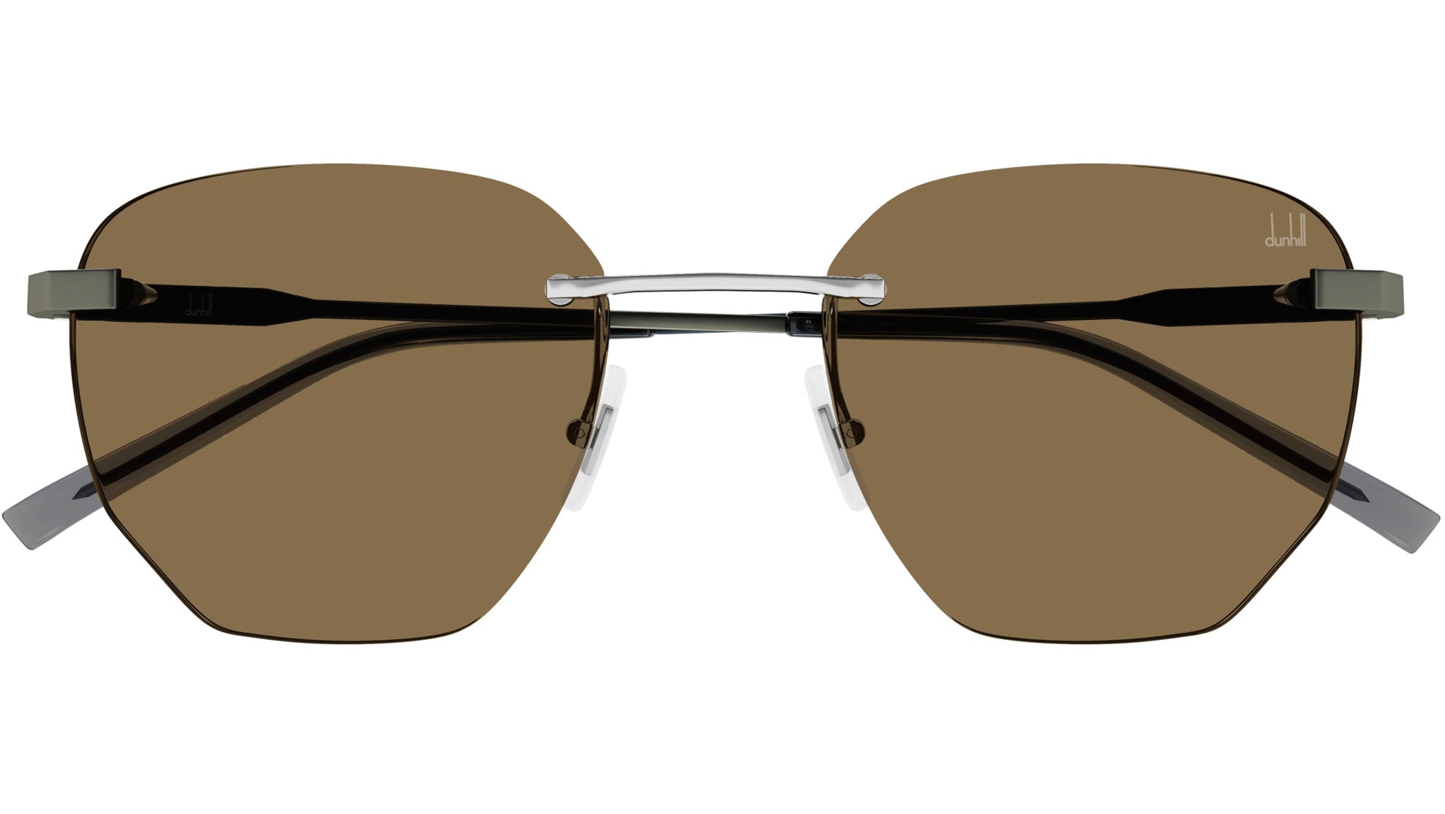 Occhiali da sole Dunhill linea Dunhill modello DU0066S variante colore 002 grigio scuro semiopaco / argento lucido con lenti color marrone tinta unita.