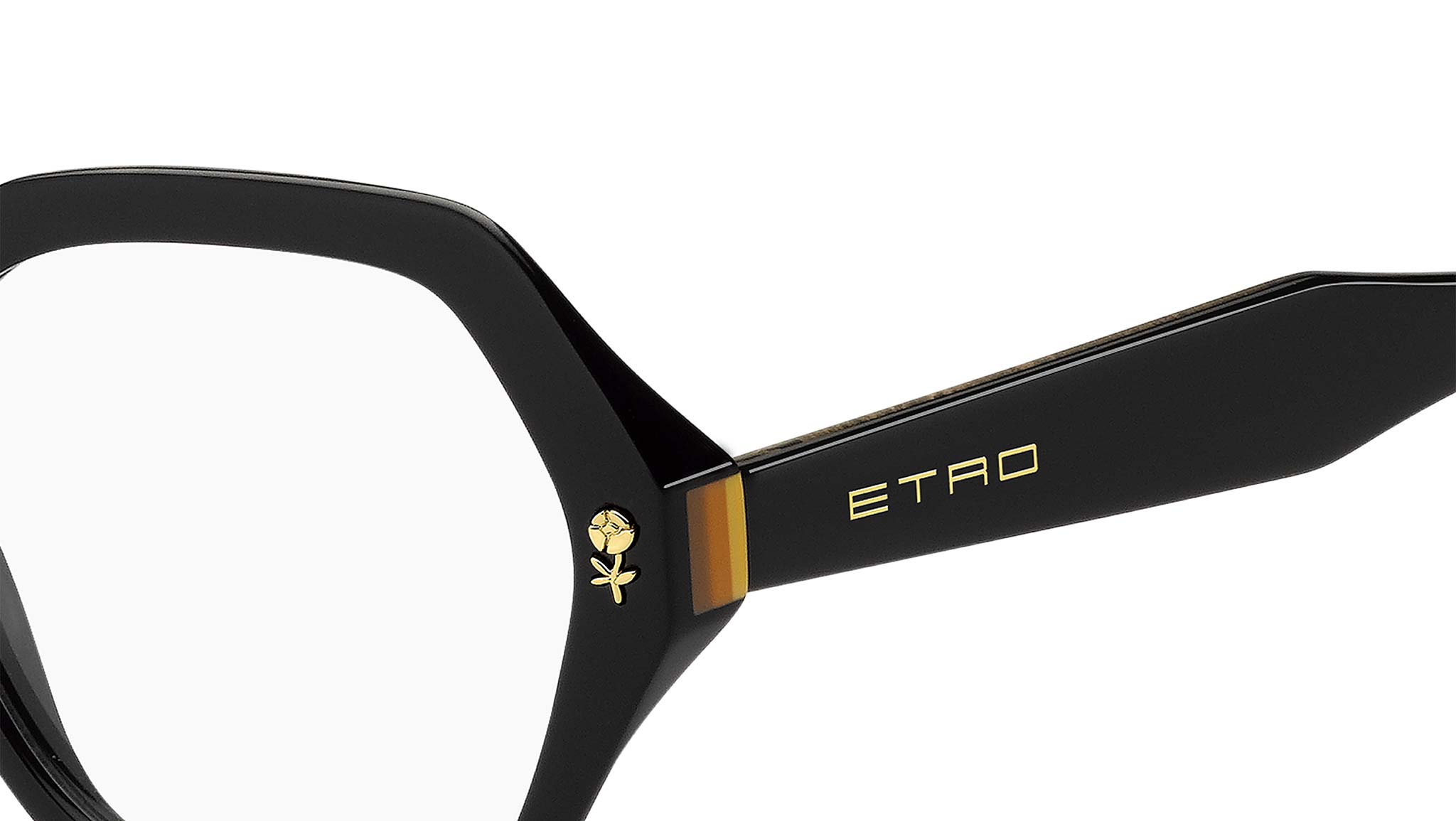 Occhiali da vista ETRO modello 0012 codice colore 71C nero giallo con lenti demo Un omaggio ai motivi floreali e pattern grafici che definiscono l'estetica di ETRO, la collezione eyewear "Graphic Elegance" traduce i ricami e le stampe della Maison in occhiali da vista eclettici e raffinati. La montatura in acetato dagli angoli smussati è impreziosita da un'applicazione in metallo a forma di fiore e un inserto a righe multicolore sui lati. Le aste sono realizzate in acetato trasparente con un'anima interna in metallo. Il design innovativo è completato dagli iconici terminali in acetato, ispirati alla simmetria del logo ETRO. Rivenditore autorizzato online ETRO Eyewear.